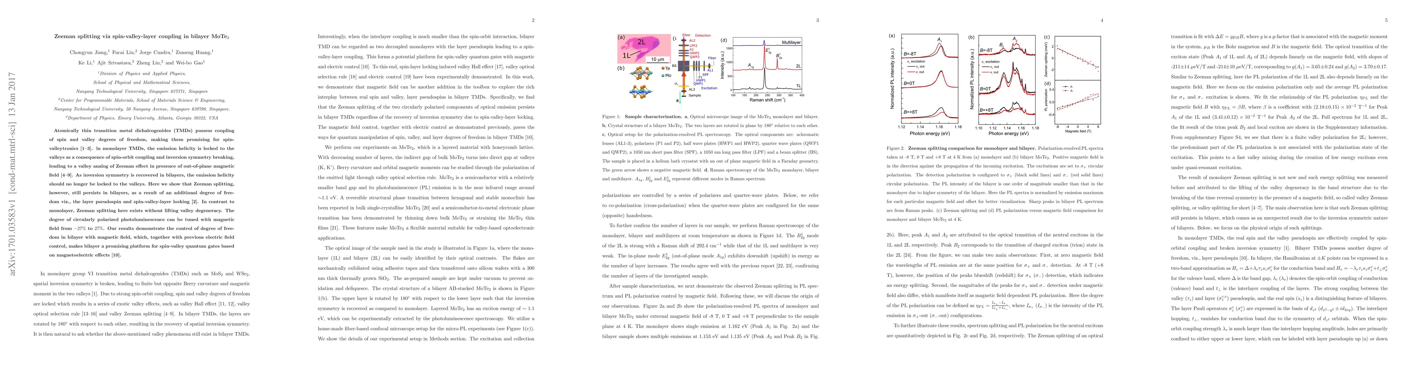 The research demonstrates that Zeeman splitting persists in bilayer MoTe2 due to spin-valley-layer coupling, enabling control over pseudospin degrees of freedom and tunable photoluminescence polarization from $-27\%$ to $27\%$ with a magnetic field, indicating potential for spin-valley quantum gates.