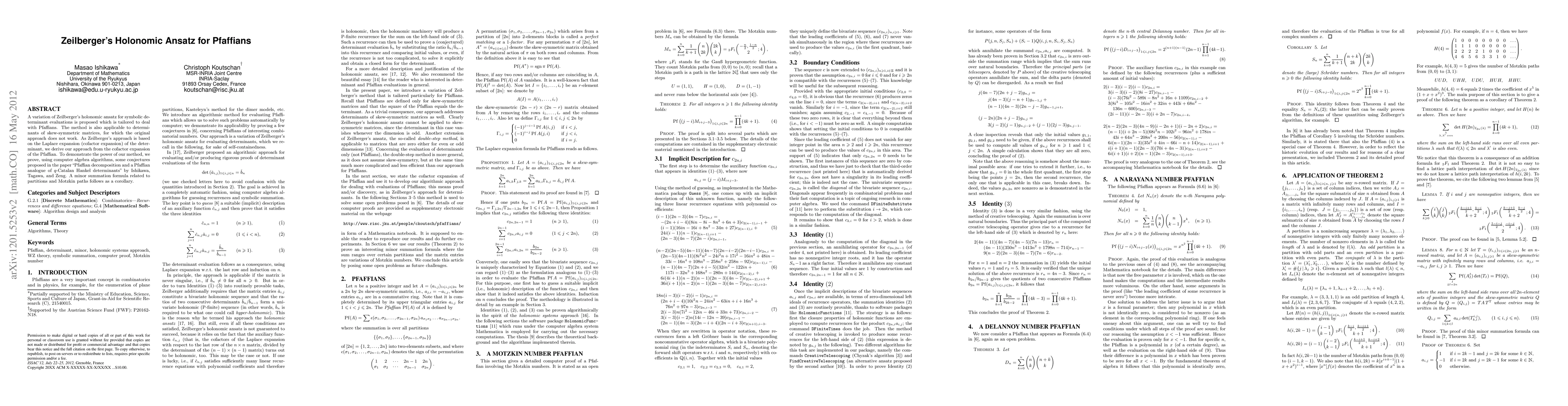 This paper proposes a modified version of Zeilberger's holonomic ansatz specifically for evaluating Pfaffians and skew-symmetric matrix determinants, derived from the cofactor expansion of the Pfaffian. The method is demonstrated through proving conjectures from a related work and deriving a minor summation formula as a corollary.
