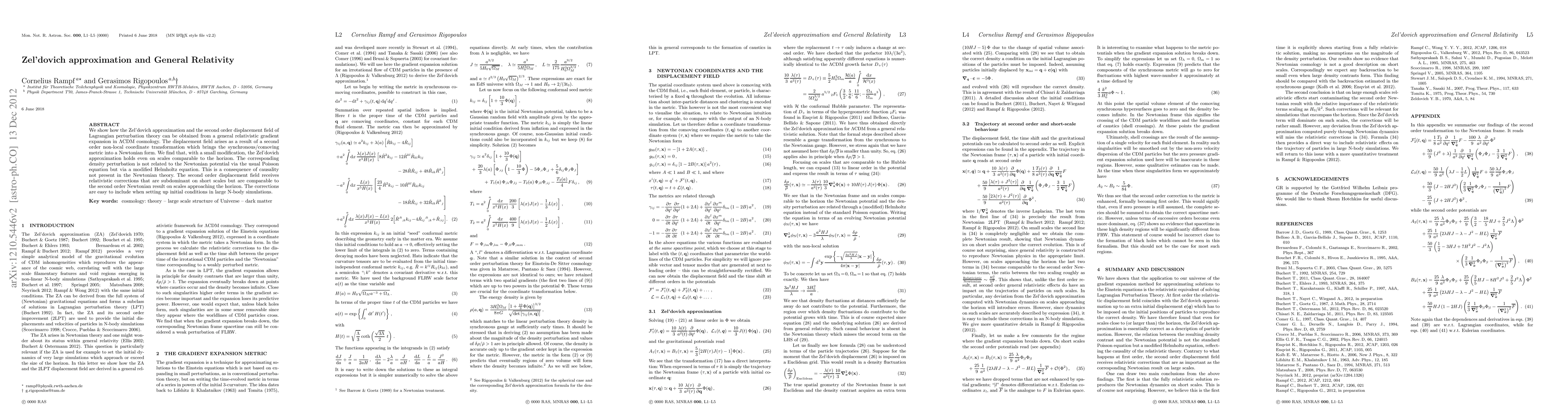 This paper demonstrates how the Zel'dovich approximation and second-order displacement field in Lagrangian perturbation theory emerge from a general relativistic gradient expansion in \Lambda{}CDM cosmology. It shows that the approximation holds on scales comparable to the horizon, with relativistic corrections that are significant near the horizon but subdominant on shorter scales.