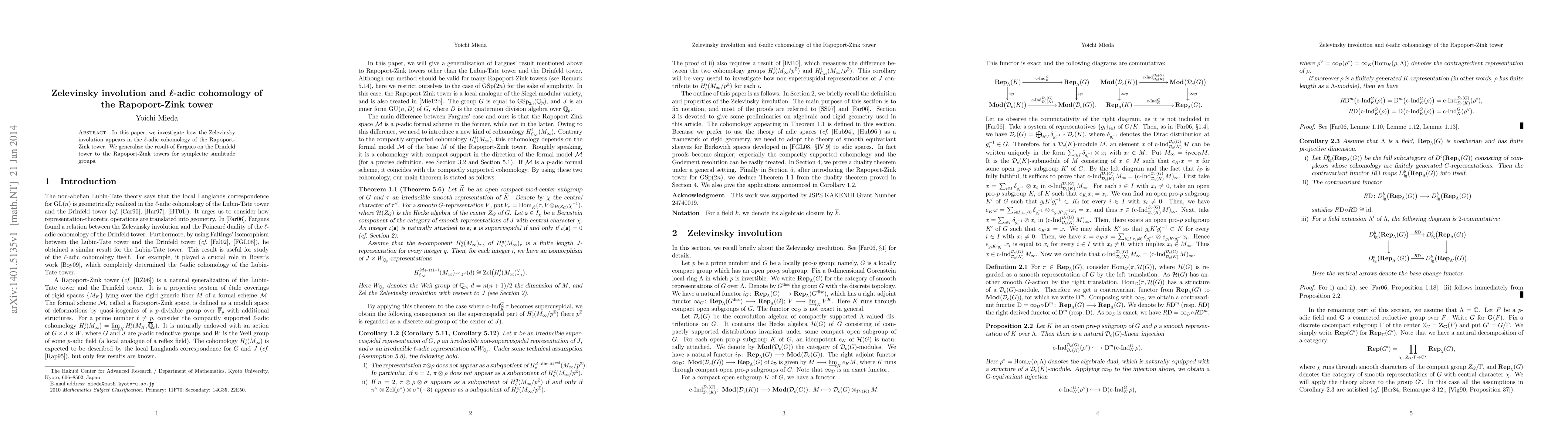 This paper explores the manifestation of the Zelevinsky involution within the l-adic cohomology of the Rapoport-Zink tower and extends Fargues' results on the Drinfeld tower to these towers for symplectic similitude groups.