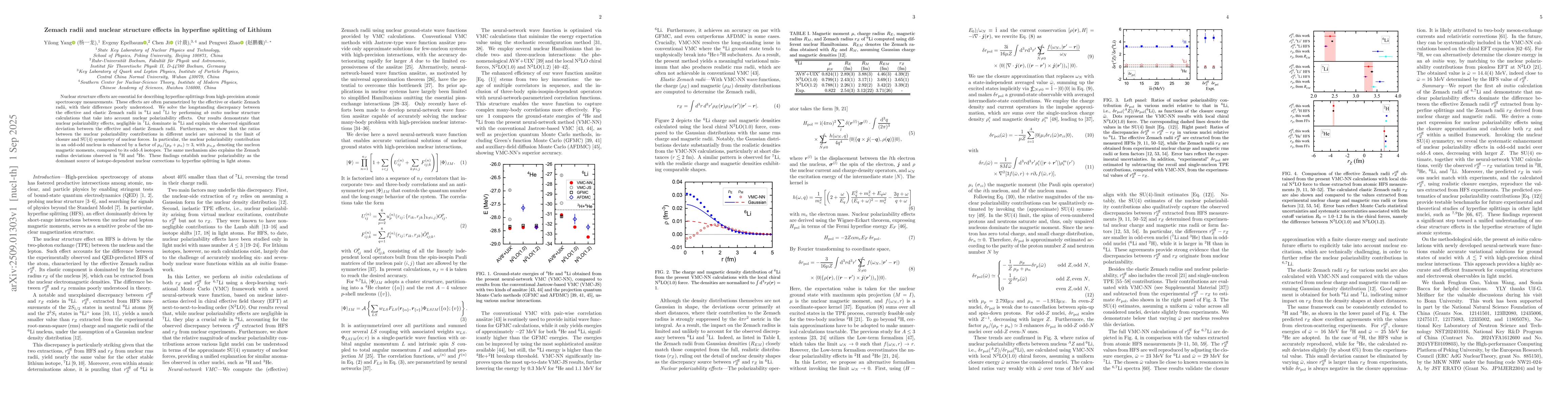 Nuclear structure effects are essential for describing hyperfine splittings from high-precision atomic spectroscopy measurements. These effects are often parametrized by the effective or elastic Zemach radii, with their difference poorly understood. We solve the longstanding discrepancy between the effective and elastic Zemach radii in ${}^6$Li and ${}^7$Li by performing \emph{ab initio} nuclear structure calculations that take into account nuclear polarizability effects. Our results demonstrate that nuclear polarizability effects, negligible in ${}^7$Li, dominate in ${}^6$Li and explain the observed significant deviation between the effective and elastic Zemach radii. Furthermore, we show that the ratios between the nuclear polarizability contributions in different nuclei are universal in the limit of closure and SU(4) symmetry of nuclear forces. In particular, the nuclear polarizability contribution in an odd-odd nucleus is enhanced by a factor of $\mu_p/(\mu_p+\mu_n)\simeq 3$, with $\mu_{n,p}$ denoting the nucleon magnetic moments, compared to its odd-$A$ isotopes. The same mechanism also explains the Zemach radius deviations observed in ${}^2$H and ${}^3$He. These findings establish nuclear polarizability as the dominant source of isotope-dependent nuclear corrections to hyperfine splitting in light atoms.