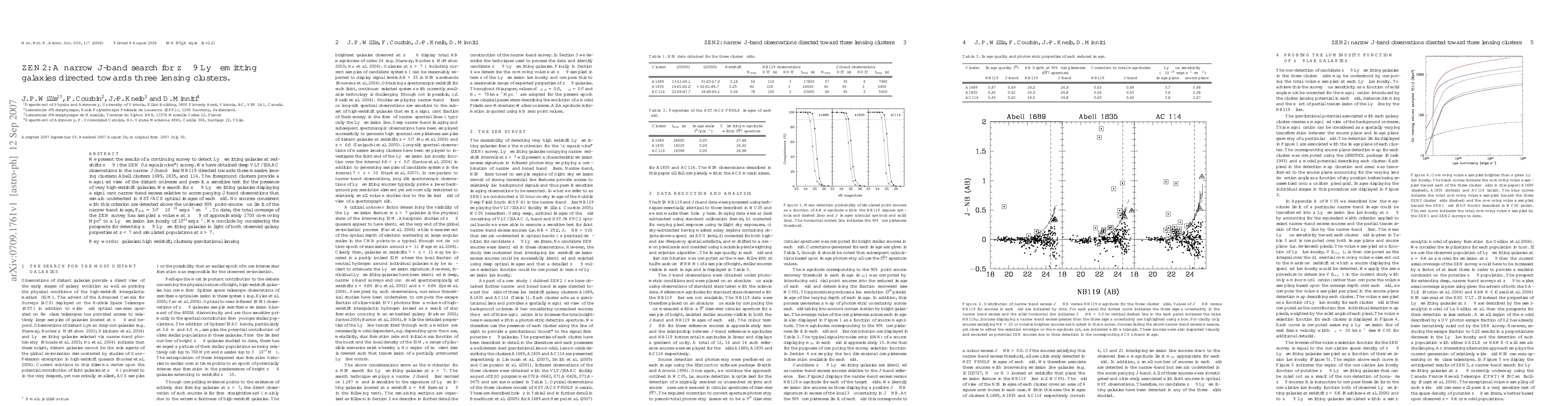 The ZEN2 survey utilized VLT/ISAAC observations in the J-band to search for Lya emitting galaxies at z~9 near three lensing clusters. No galaxies meeting the criteria for z~9 Lya emission were detected, suggesting the need for further exploration based on current galaxy properties and simulations.