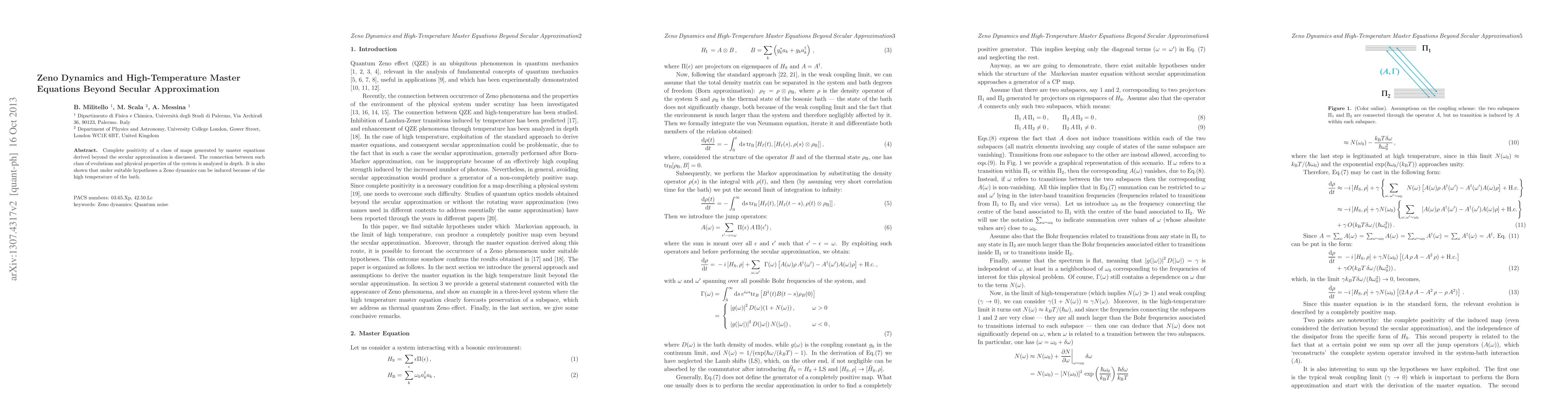 This paper explores the complete positivity of evolution maps from master equations derived beyond the secular approximation, linking these evolutions to physical properties. It demonstrates that high temperatures can induce Zeno dynamics under specific conditions.