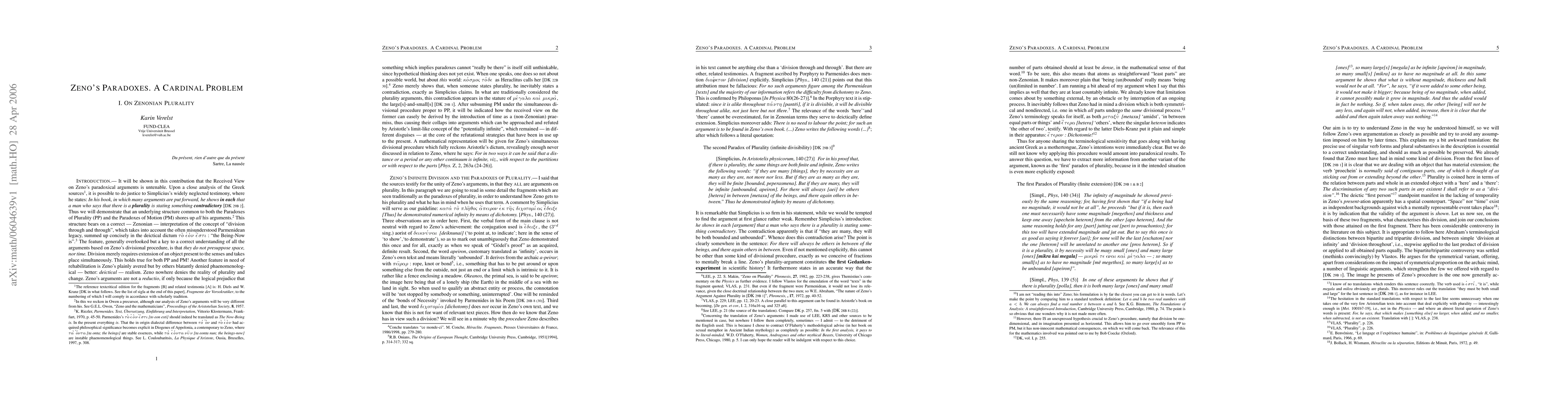This paper challenges the idea that Zeno's paradoxes have been solved by demonstrating a common underlying structure in his arguments for Plurality and Motion that can be mathematically represented without refuting them.