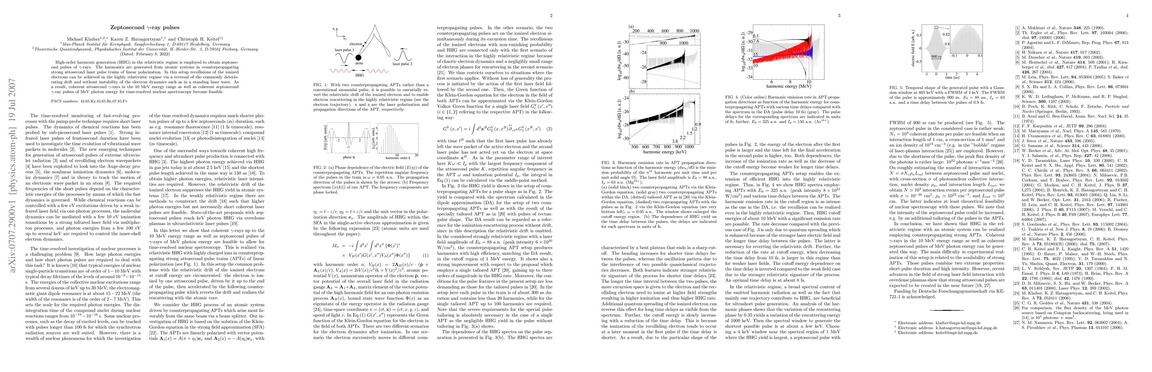 The research employs high-order harmonic generation (HHG) in the relativistic regime using atomic systems in counterpropagating strong attosecond laser pulse trains of linear polarization to generate zeptosecond pulses of γ-rays.