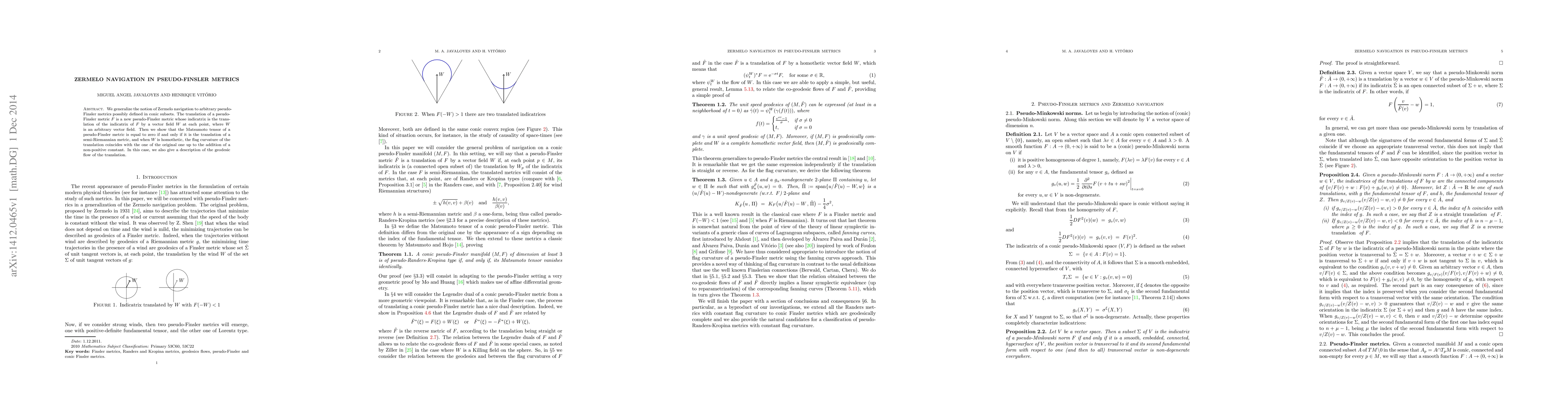 This paper generalizes Zermelo navigation to pseudo-Finsler metrics, introducing a translation method that shifts the indicatrix by a vector field. The study reveals conditions under which the Matsumoto tensor equals zero and describes the geodesic flow in cases where the translation vector field is homothetic.