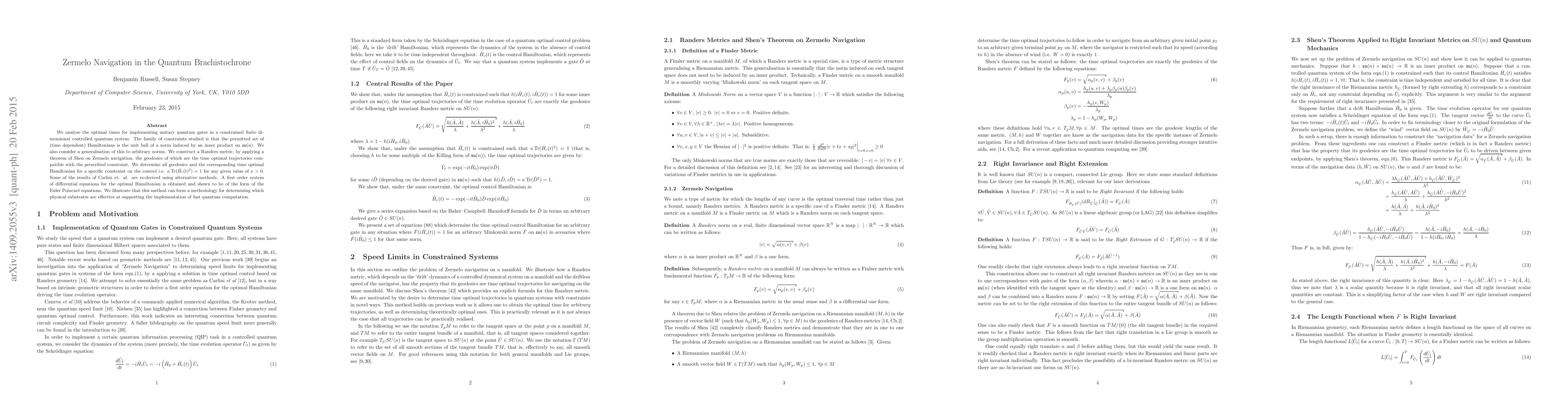 Researchers used Zermelo navigation to optimize quantum gate implementation times in a controlled quantum system with constraints on Hamiltonians. They derived a method for determining effective physical substrates for fast quantum computation.