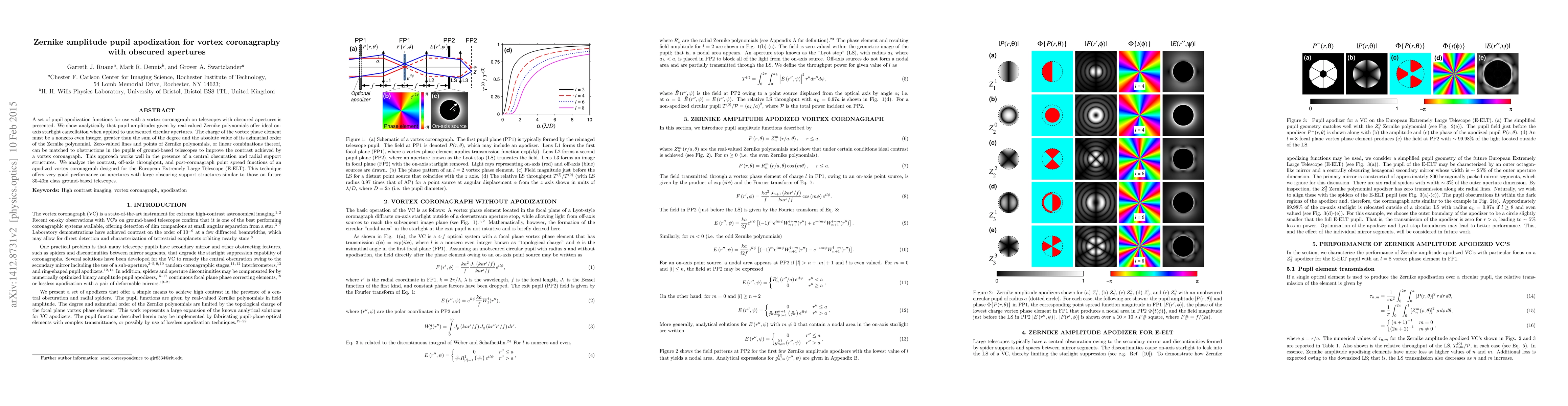 This research presents a method using Zernike polynomials to design pupil apodization functions for vortex coronagraphs on telescopes with obscured apertures. The approach ensures optimal on-axis starlight cancellation and improved contrast, even around obstructions, making it suitable for future large ground-based telescopes like the E-ELT.