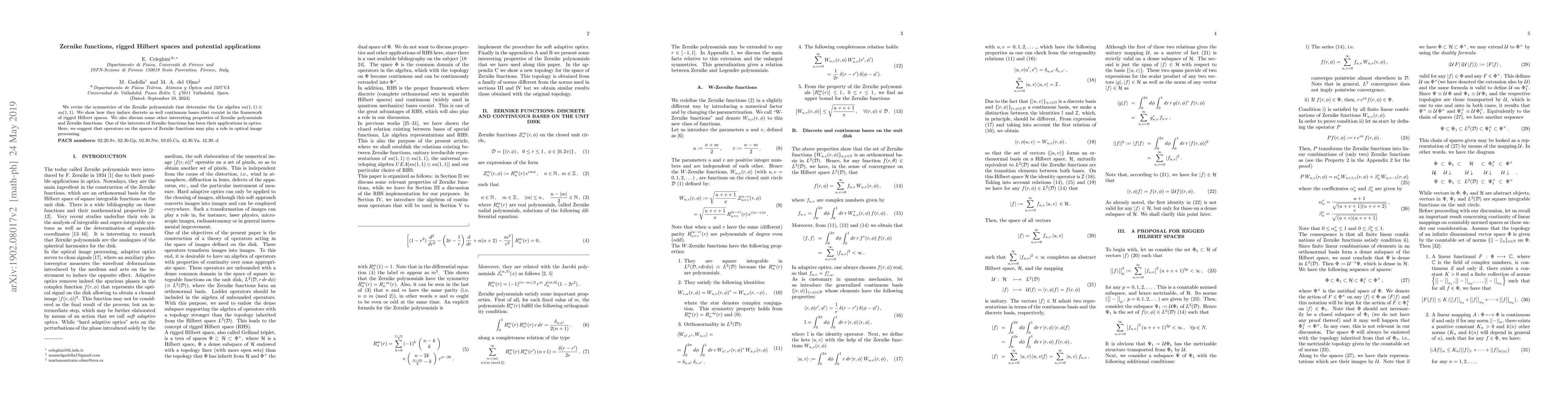 Summary: This paper explores the symmetries of Zernike polynomials, establishing their relationship with the su(1,1) Lie algebra, and discusses their use in rigged Hilbert spaces. It also proposes potential applications in optical image processing through operators acting on Zernike function spaces.
