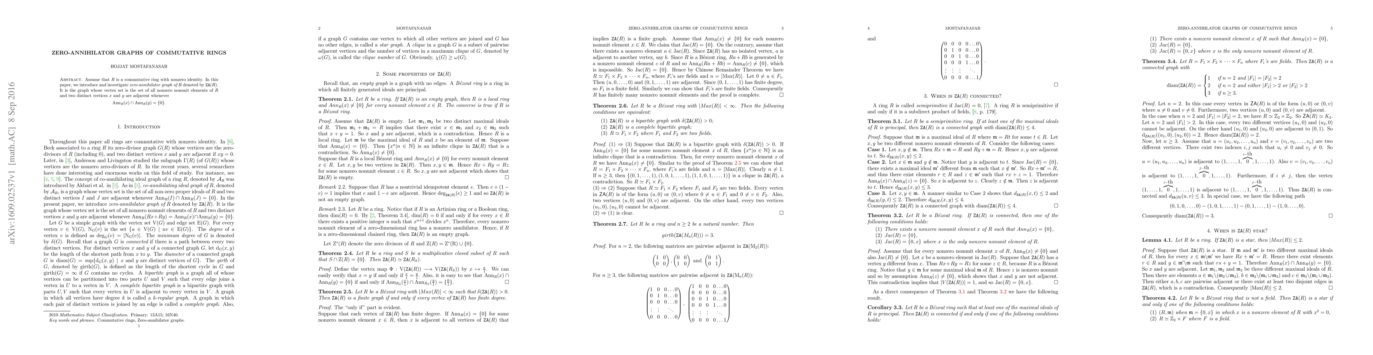 This paper introduces the zero-annihilator graph of a commutative ring, a new concept that connects elements with their annihilators, and explores its properties and implications.
