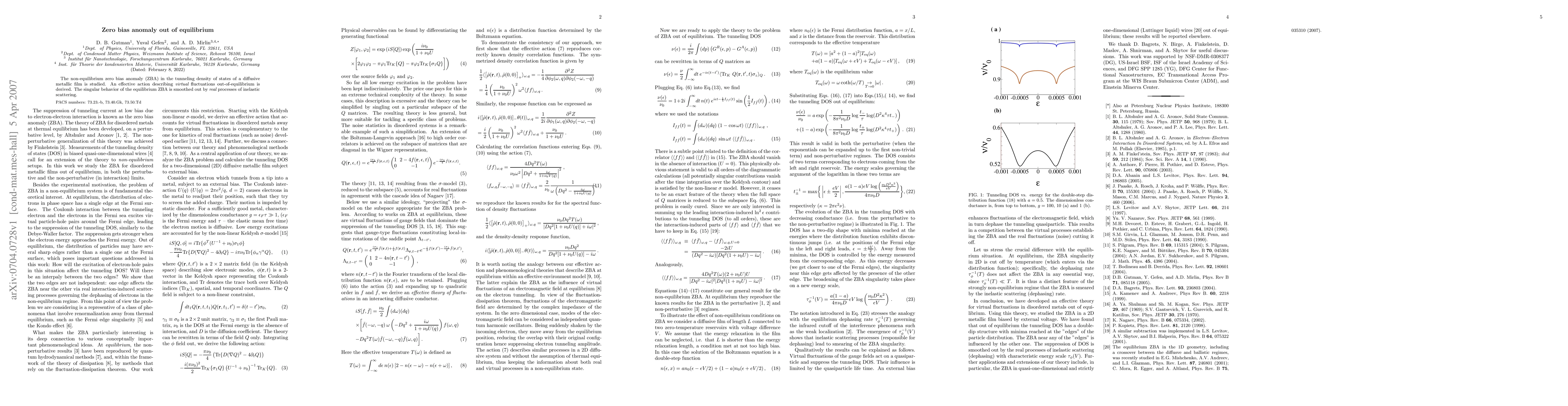 This paper investigates the non-equilibrium zero bias anomaly (ZBA) in the tunneling density of states of a metallic film, deriving an effective action to describe out-of-equilibrium virtual fluctuations, and finds that real inelastic scattering processes smooth out the singular behavior of the equilibrium ZBA.