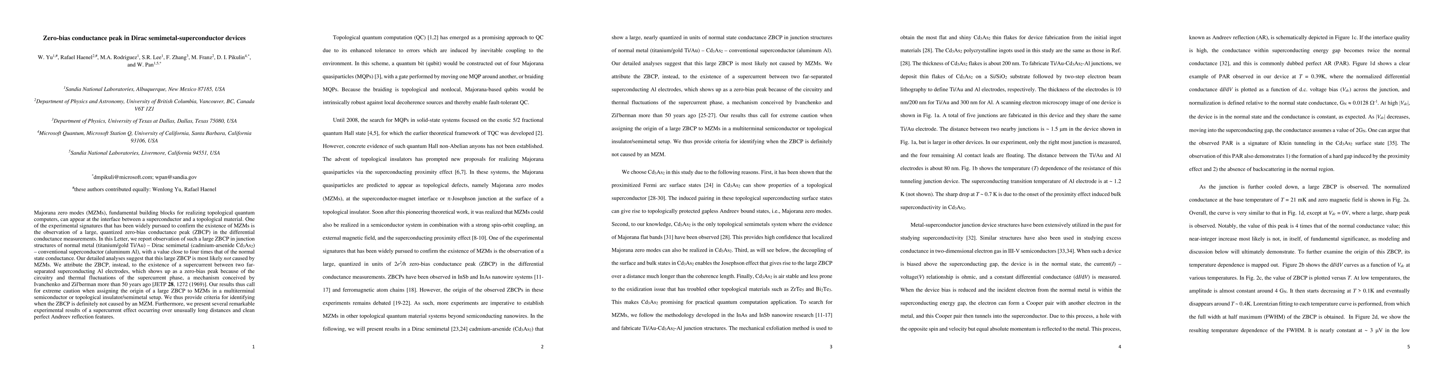 This paper reports a large zero-bias conductance peak (ZBCP) in a junction structure combining a normal metal, Dirac semimetal, and superconductor, attributing the peak to a supercurrent mechanism rather than Majorana zero modes. The findings caution against attributing ZBCP solely to Majorana zero modes in complex setups.