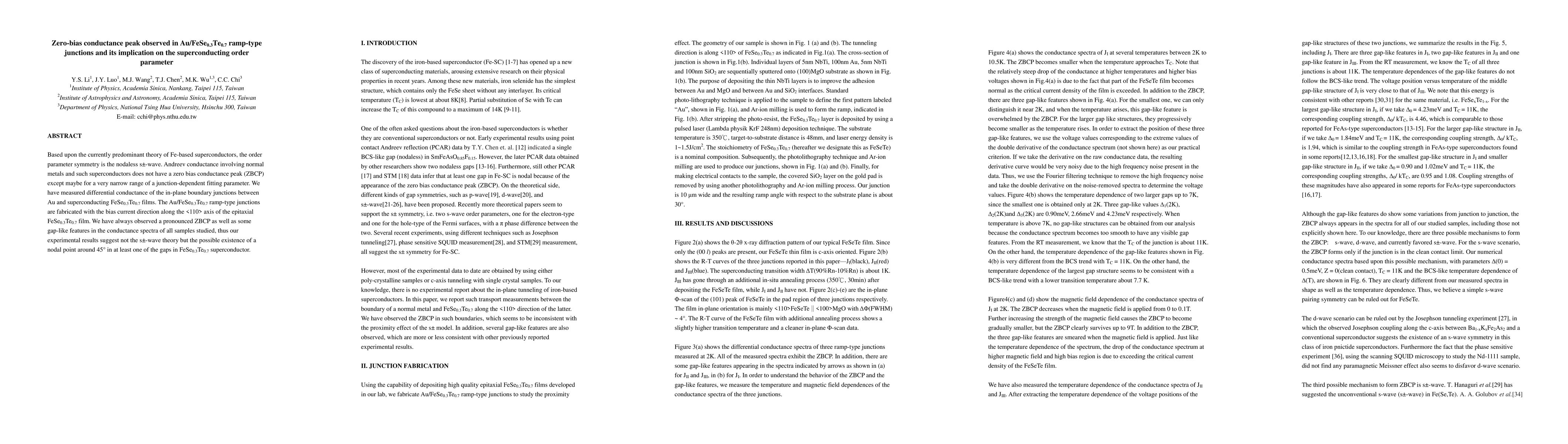 Researchers observed a zero-bias conductance peak in Au/FeSe0.3Te0.7 ramp-type junctions, contradicting the dominant theory of Fe-based superconductors, suggesting the existence of a nodal point.