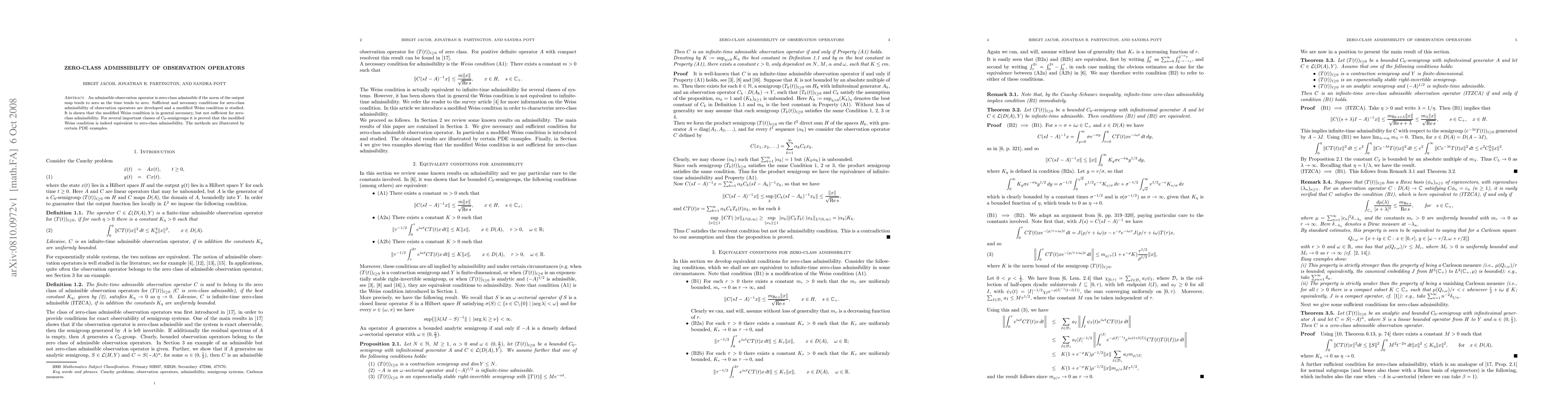 An admissible observation operator is zero-class admissible if the norm of the output map tends to zero as the time tends to zero. Sufficient and necessary conditions for zero-class admissibility of observation operators are developed and a modified Weiss condition is studied. It is shown that the modified Weiss condition is in general necessary, but not sufficient for zero-class admissibility. For several important classes of C_0-semigroups it is proved that the modified Weiss condition is indeed equivalent to zero-class admissibility. The methods are illustrated by certain PDE examples.