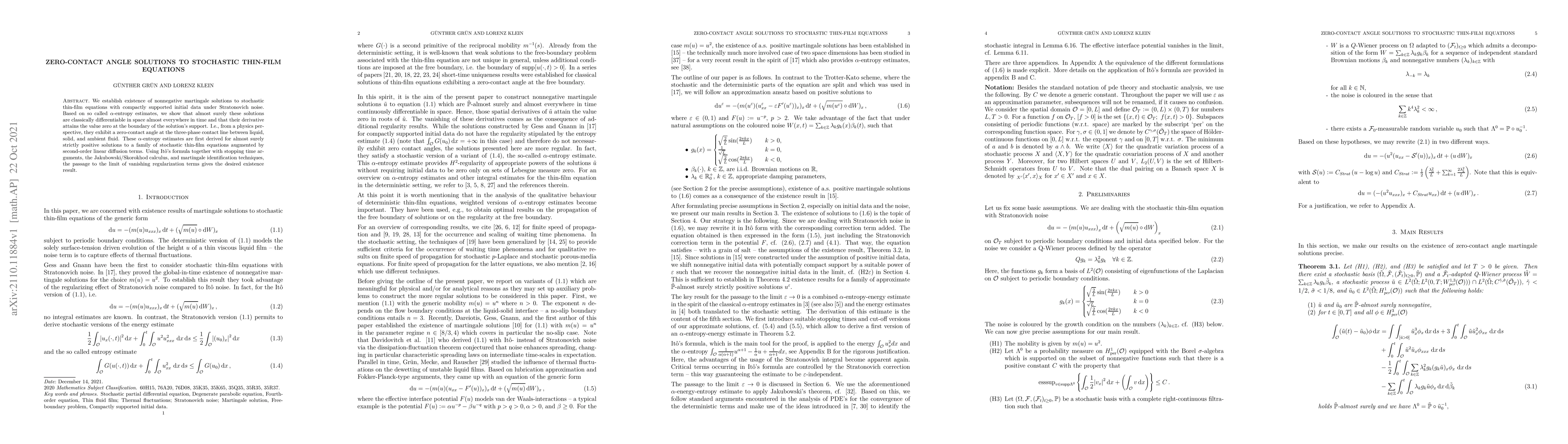 Researchers found that certain solutions to thin-film equations exhibit a zero-contact angle between liquid, solid, and ambient fluid, making them classically differentiable in space almost everywhere over time.