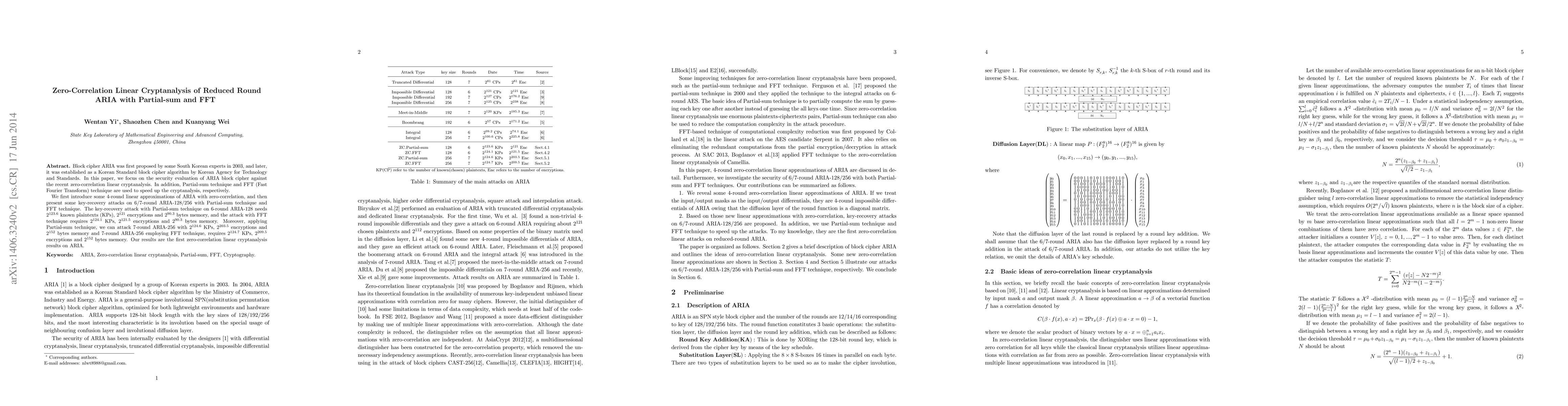 Researchers conducted a zero-correlation linear cryptanalysis on ARIA block cipher, revealing attacks requiring significantly fewer known plaintexts and computations than previously thought.