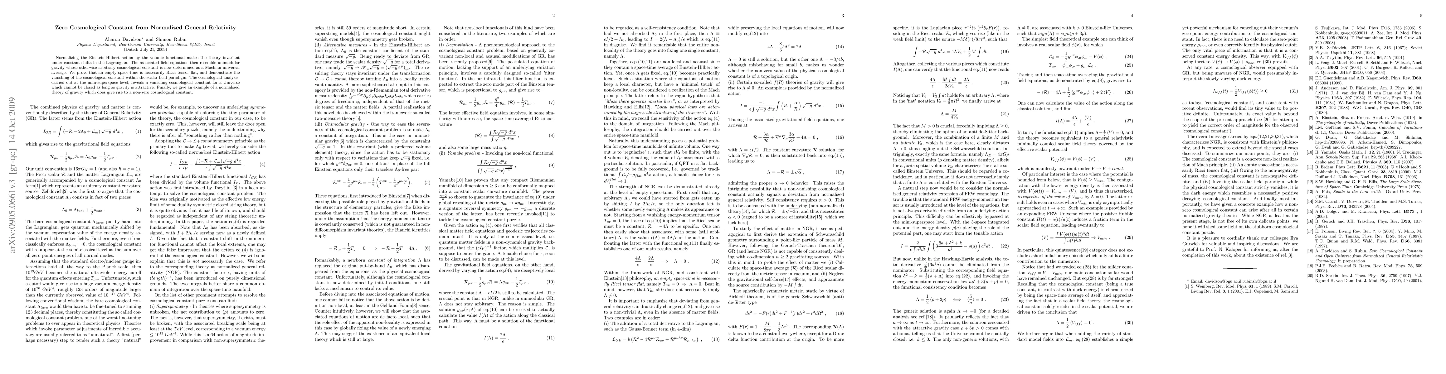 This paper normalizes the Einstein-Hilbert action to derive a theory invariant under constant shifts, leading to a vanishing cosmological constant as a universal average. It concludes that an empty space-time must be Ricci tensor flat, and demonstrates this through cosmological analysis at the mini-superspace level.