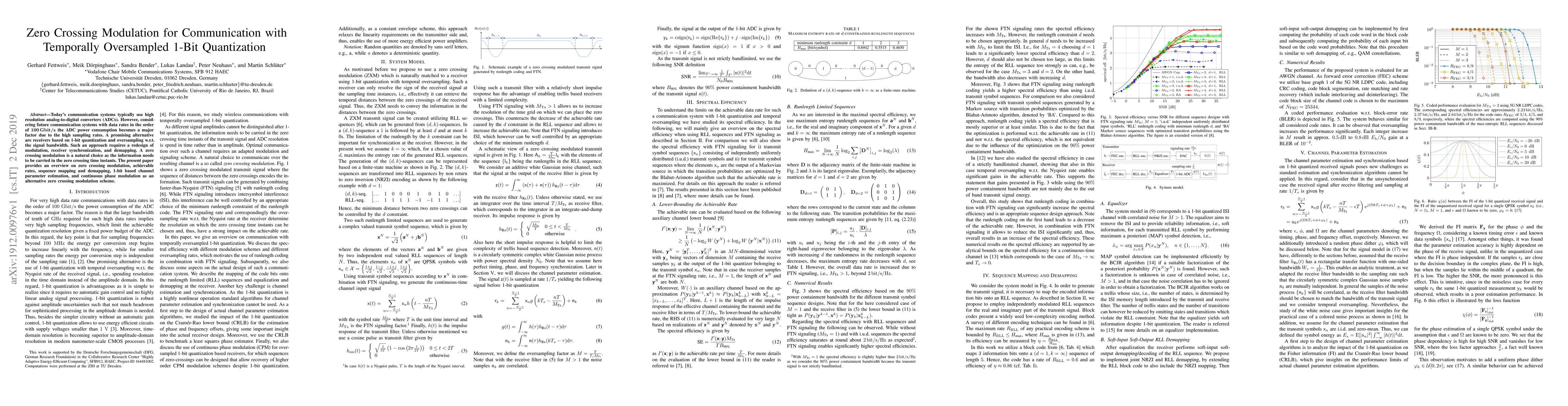 This paper explores zero crossing modulation for communication systems utilizing 1-bit quantization and oversampling to reduce power consumption in high-speed communication. It discusses the redesign needed for modulation, receiver synchronization, and demapping, and presents continuous phase modulation as an alternative scheme.