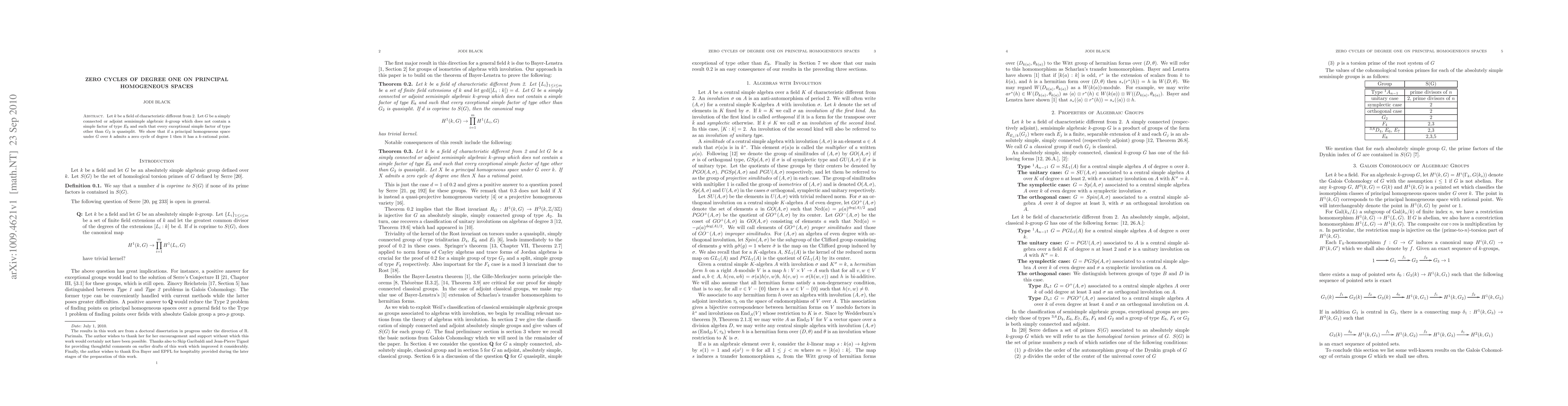 Let $k$ be a field of characteristic different from 2. Let $G$ be a simply connected or adjoint semisimple algebraic $k$-group which does not contain a simple factor of type $E_8$ and such that every exceptional simple factor of type other than $G_2$ is quasisplit. We show that if a principal homogeneous space under $G$ over $k$ admits a zero cycle of degree 1 then it has a $k$-rational point.