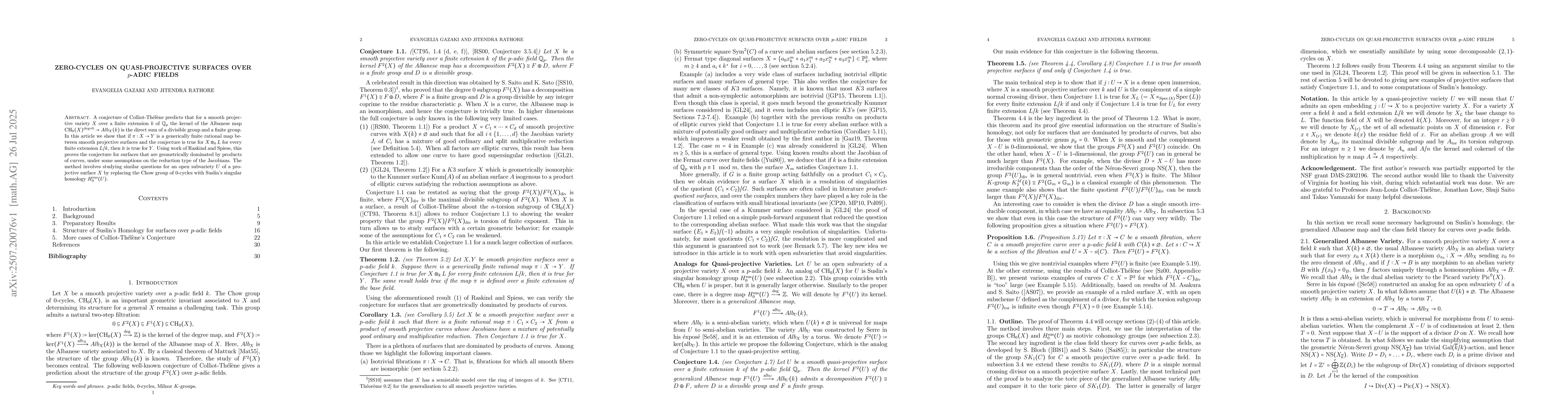 A conjecture of Colliot-Th\'{e}l\`{e}ne predicts that for a smooth projective variety $X$ over a finite extension $k$ of $\mathbb{Q}_p$ the kernel of the Albanese map $\text{CH}_0(X)^{\text{deg}=0}\to Alb_X(k)$ is the direct sum of a divisible group and a finite group. In this article we show that if $\pi:X\dashrightarrow Y$ is a generically finite rational map between smooth projective surfaces and the conjecture is true for $X\otimes_k L$ for every finite extension $L/k$, then it is true for $Y$. Using work of Raskind and Spiess, this proves the conjecture for surfaces that are geometrically dominated by products of curves, under some assumptions on the reduction type of the Jacobians. The method involves studying similar questions for an open subvariety $U$ of a projective surface $X$ by replacing the Chow group of $0$-cycles with Suslin's singular homology $H_0^{\text{sus}}(U)$.
