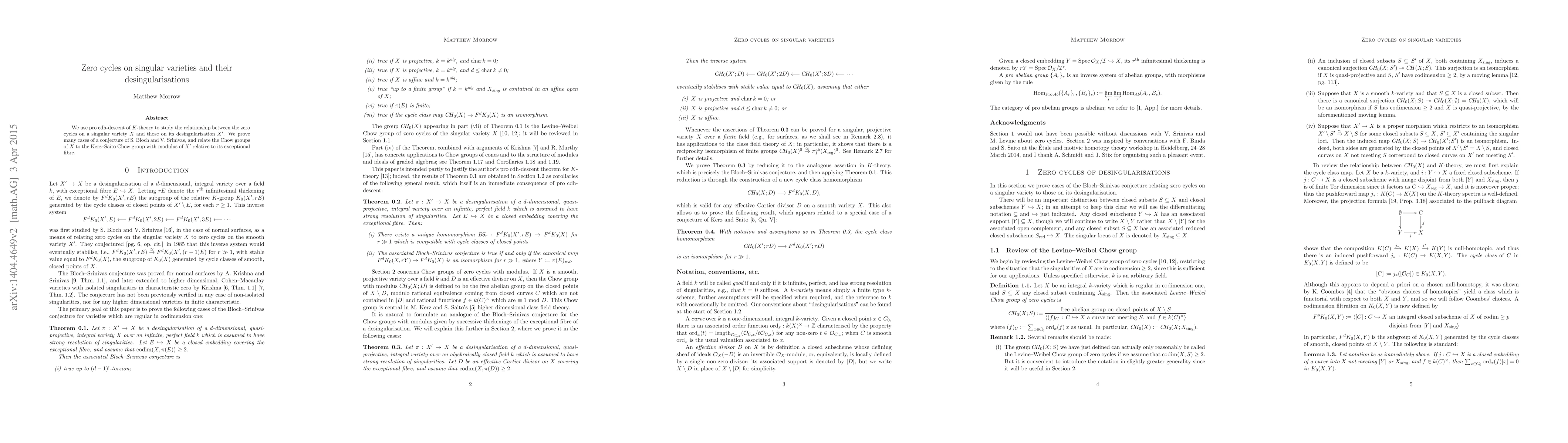 We use pro cdh-descent of $K$-theory to study the relationship between the zero cycles on a singular variety $X$ and those on its desingularisation $X'$. We prove many cases of a conjecture of S. Bloch and V. Srinivas, and relate the Chow groups of $X$ to the Kerz--Saito Chow group with modulus of $X'$ relative to its exceptional fibre.