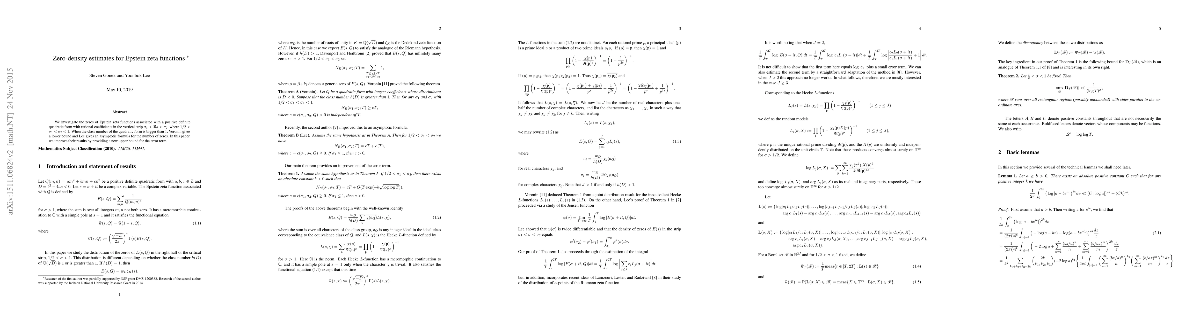 Researchers improve bounds on the number of zeros of Epstein zeta functions for a specific type of quadratic form, providing new insights into the distribution of these complex numbers.