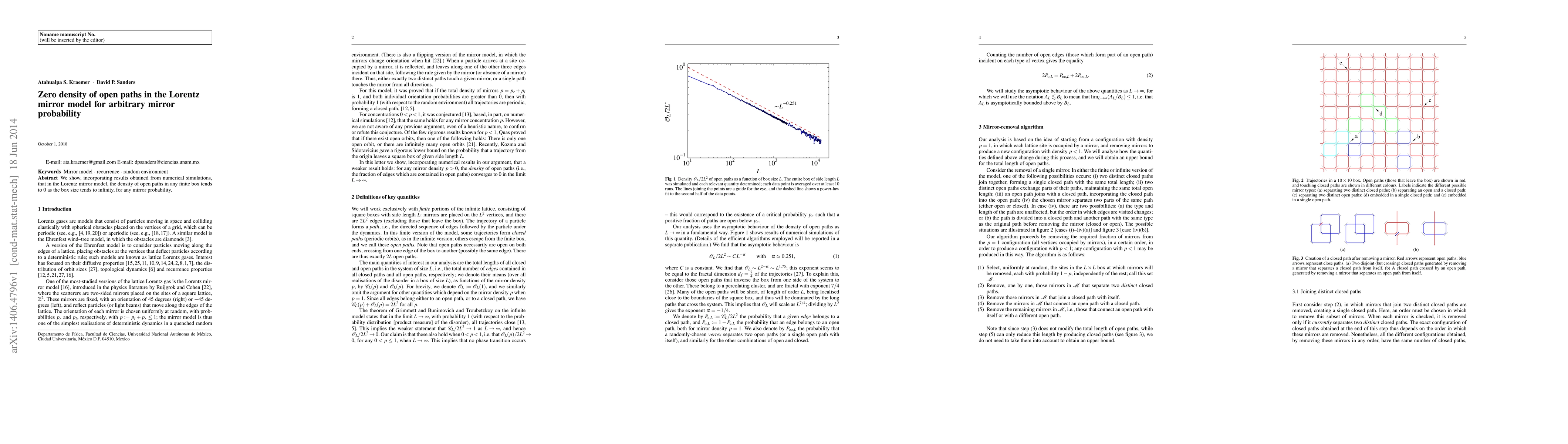 We show, incorporating results obtained from numerical simulations, that in the Lorentz mirror model, the density of open paths in any finite box tends to 0 as the box size tends to infinity, for any mirror probability.