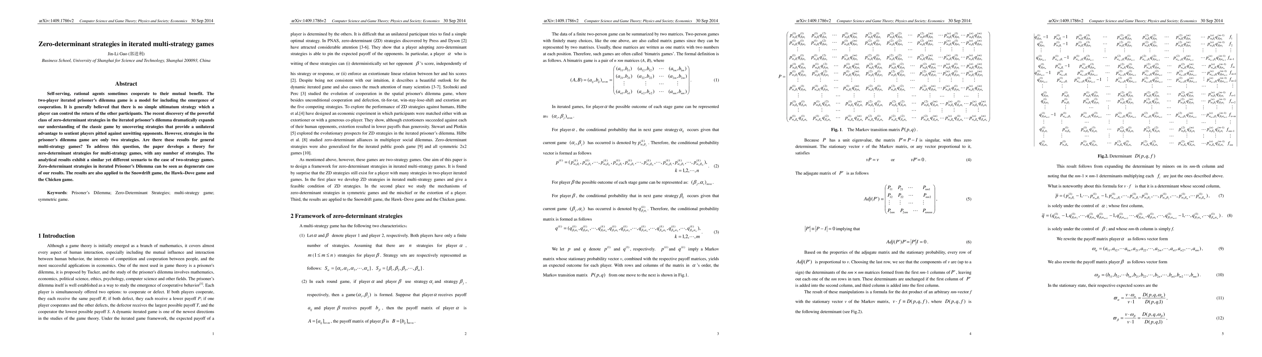 Self-serving, rational agents sometimes cooperate to their mutual benefit. The two-player iterated prisoner's dilemma game is a model for including the emergence of cooperation. It is generally believed that there is no simple ultimatum strategy which a player can control the return of the other participants. The recent discovery of the powerful class of zero-determinant strategies in the iterated prisoner's dilemma dramatically expands our understanding of the classic game by uncovering strategies that provide a unilateral advantage to sentient players pitted against unwitting opponents. However, strategies in the prisoner's dilemma game are only two strategies. Are there these results for general multi-strategy games? To address this question, the paper develops a theory for zero-determinant strategies for multi-strategy games, with any number of strategies. The analytical results exhibit a similar yet different scenario to the case of two-strategy games. Zero-determinant strategies in iterated prisoner's dilemma can be seen as degenerate case of our results. The results are also applied to the snowdrift game, the hawk-dove game and the chicken game.