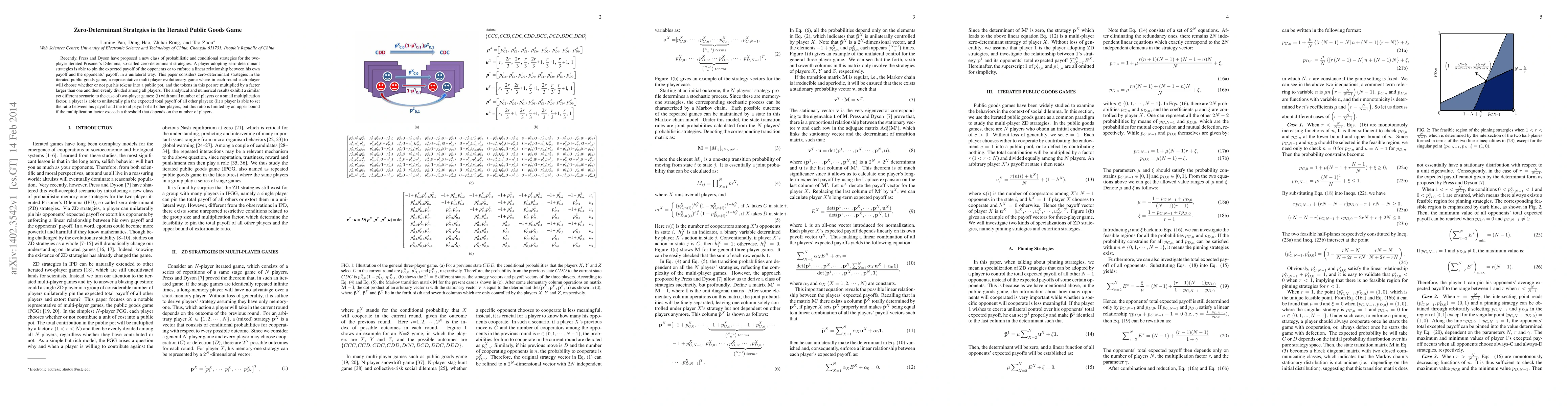 This paper explores zero-determinant strategies in the iterated public goods game, showing that a player can unilaterally control the total payoff of others with a small player group or low multiplication factor, but faces an upper bound on the payoff ratio when the multiplication factor exceeds a player-dependent threshold.