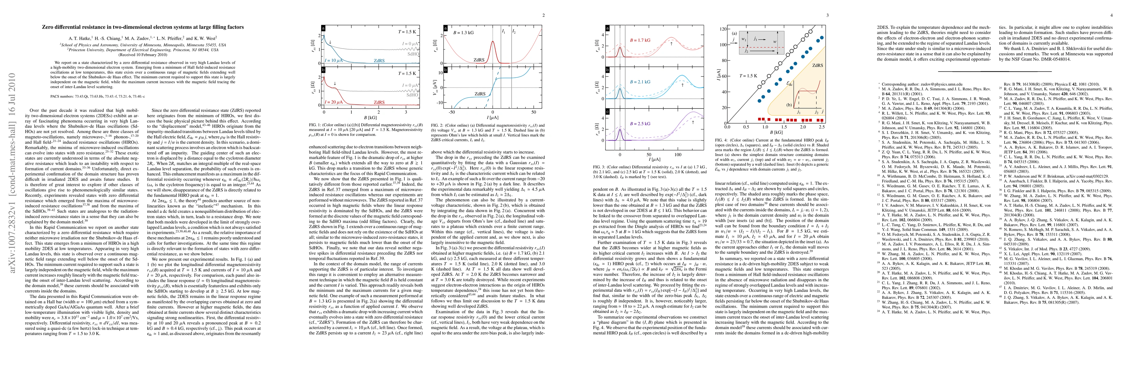 We report on a state characterized by a zero differential resistance observed in very high Landau levels of a high-mobility two-dimensional electron system. Emerging from a minimum of Hall field-induced resistance oscillations at low temperatures, this state exists over a continuous range of magnetic fields extending well below the onset of the Shubnikov-de Haas effect. The minimum current required to support this state is largely independent on the magnetic field, while the maximum current increases with the magnetic field tracing the onset of inter-Landau level scattering.