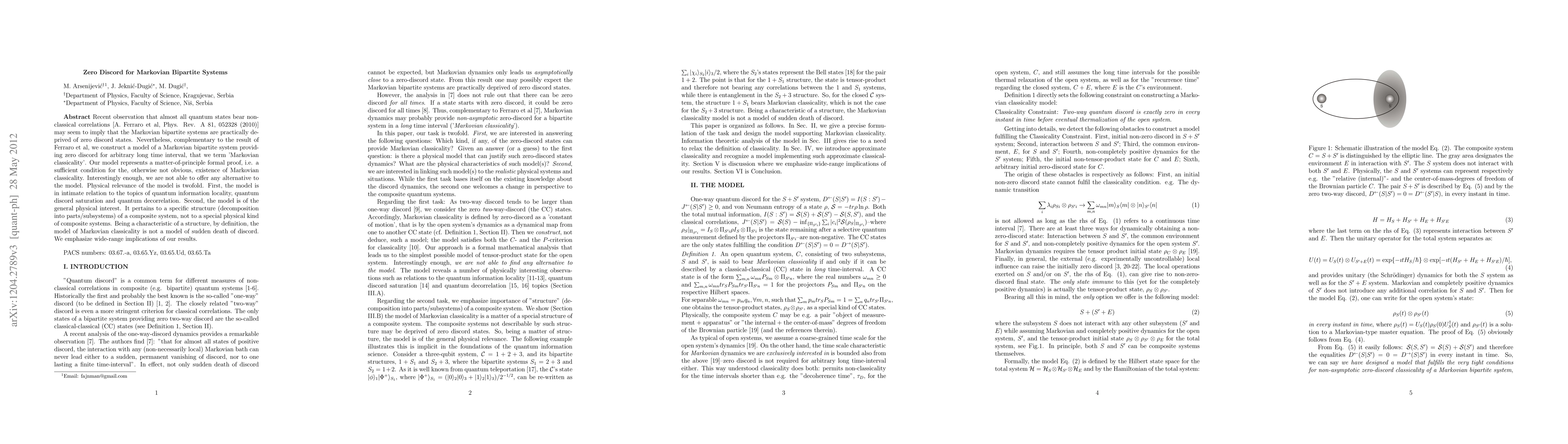 This paper constructs a model of a Markovian bipartite system that exhibits zero discord for an arbitrary long time interval, termed 'Markovian classicality', demonstrating the existence of such states despite previous observations suggesting otherwise. The model has implications for quantum information locality, quantum discord saturation, and quantum decorrelation, and highlights a general structural characteristic of composite systems.