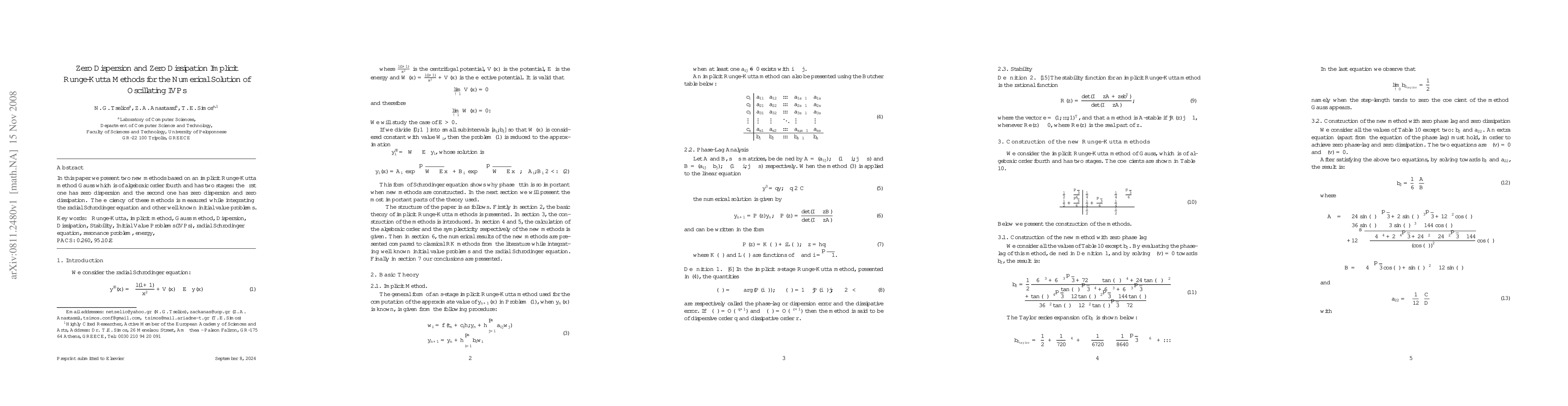 In this paper we present two new methods based on an implicit Runge-Kutta method Gauss which is of algebraic order fourth and has two stages: the first one has zero dispersion and the second one has zero dispersion and zero dissipation. The efficiency of these methods is measured while integrating the radial Schr\"odinger equation and other well known initial value problems.