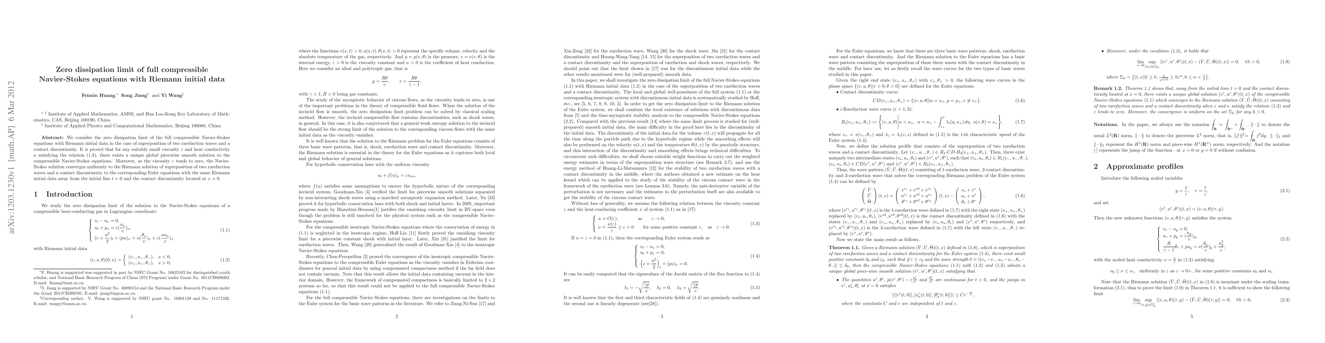 This paper investigates the zero dissipation limit of the compressible Navier-Stokes equations with Riemann initial data, proving the existence of a unique global piecewise smooth solution for small viscosity and heat conductivity. As viscosity approaches zero, the Navier-Stokes solution converges uniformly to the Euler solution away from the initial line and contact discontinuity.