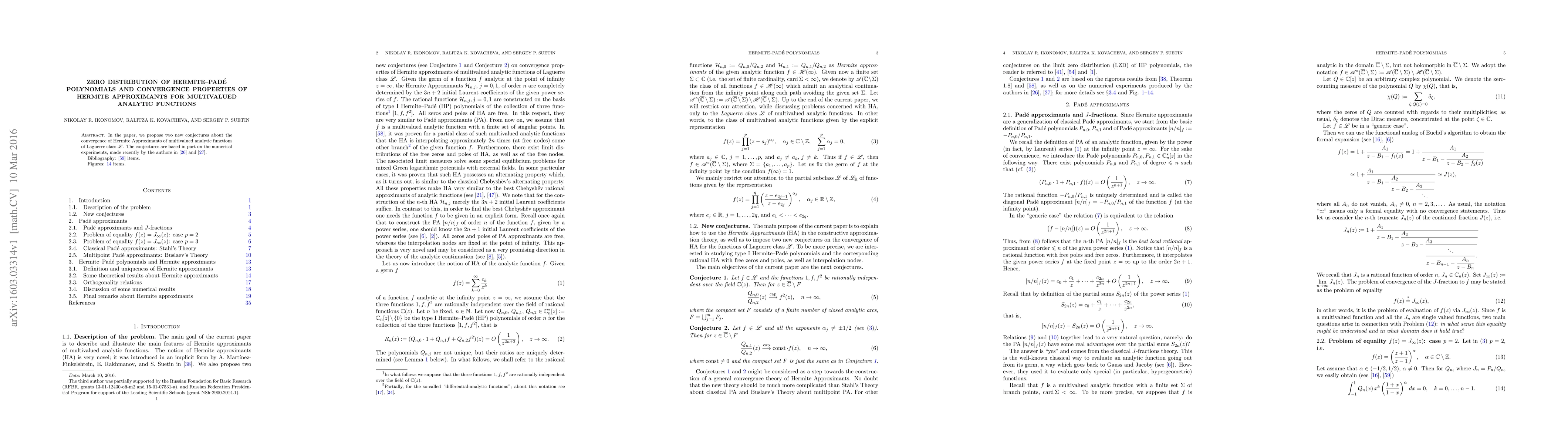 In the paper, we propose two new conjectures about the convergence of Hermite Approximants of multivalued analytic functions of Laguerre class ${\mathscr L}$. The conjectures are based in part on the numerical experiments, made recently by the authors in [26] and [27].
