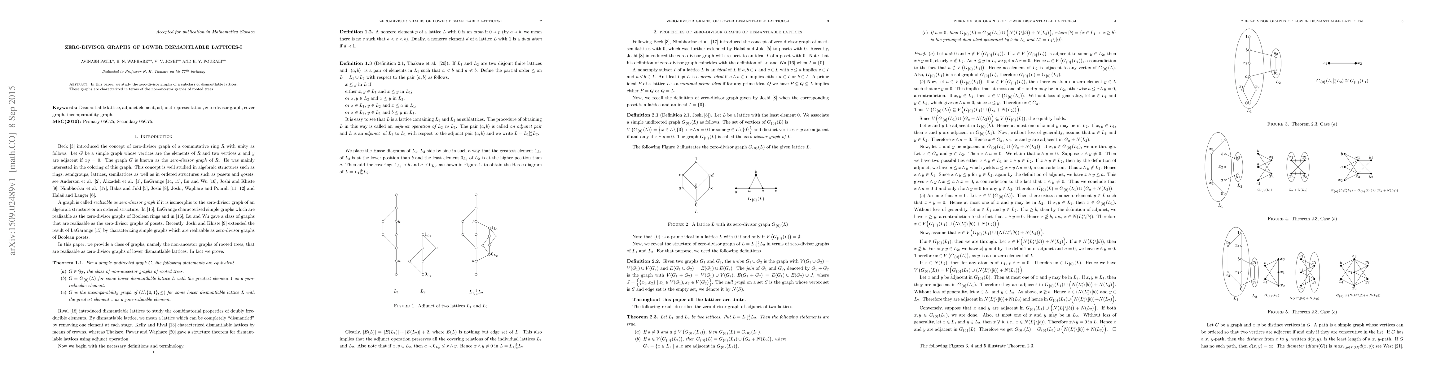 The research focuses on zero-divisor graphs of a subclass of dismantlable lattices, characterized in terms of non-ancestor graphs of rooted trees.