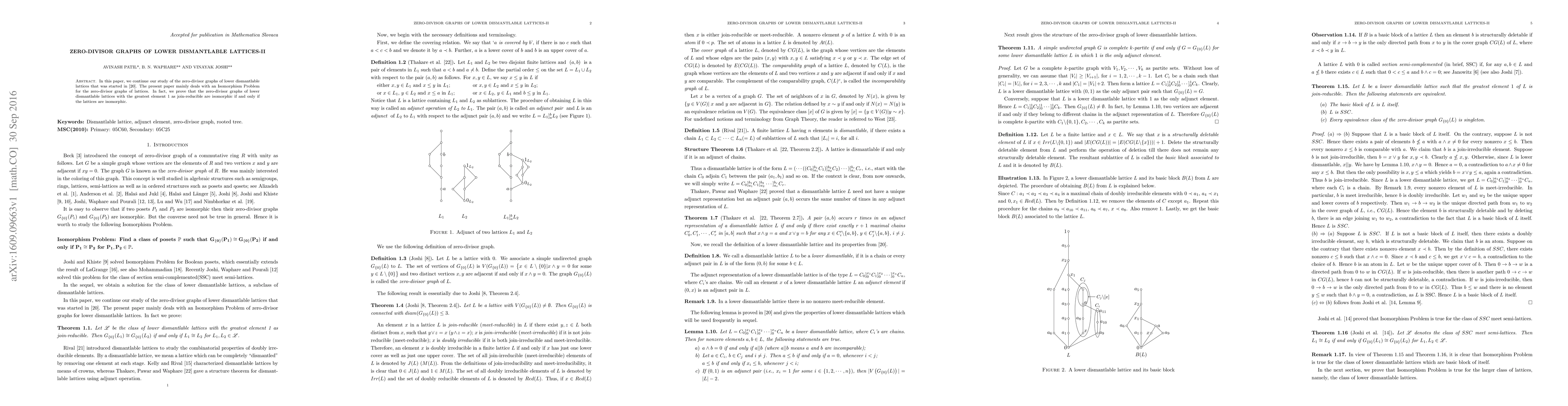 This paper extends research on zero-divisor graphs of lower dismantlable lattices, proving that the zero-divisor graphs of such lattices with 1 as join-reducible are isomorphic if and only if the lattices themselves are isomorphic.