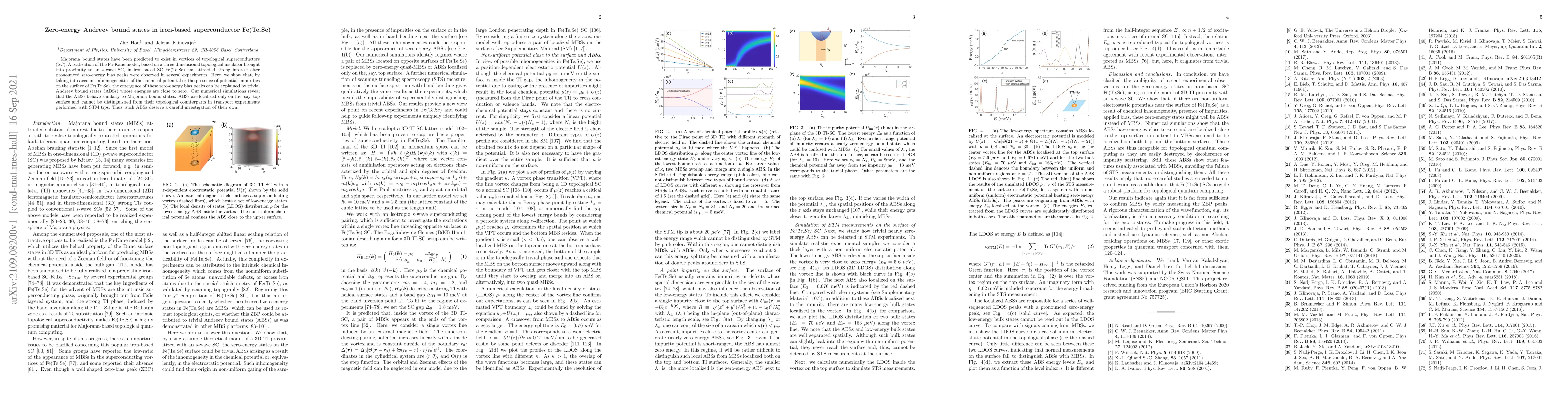 This paper investigates zero-energy bias peaks in iron-based superconductor Fe(Te,Se), previously thought to indicate Majorana bound states, but finds they are instead trivial Andreev bound states influenced by surface inhomogeneities. These localized ABSs mimic Majorana states in transport experiments, warranting further study.