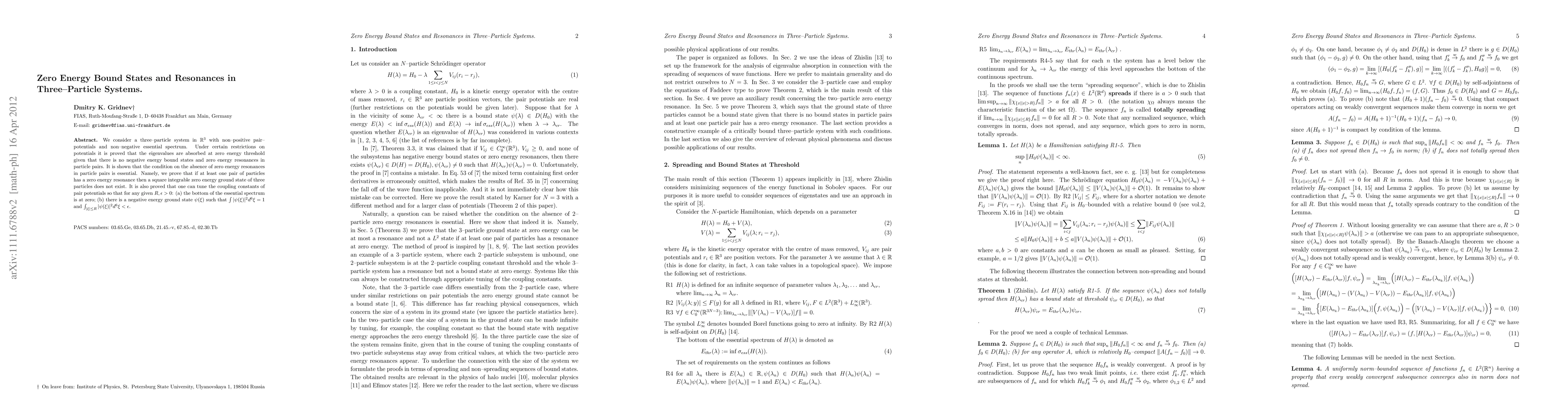 Researchers show that for three-particle systems with certain restrictions, a zero energy ground state can exist if there are no negative energy bound states or zero energy resonances in particle pairs. This discovery highlights the importance of these conditions in determining the existence of such states.