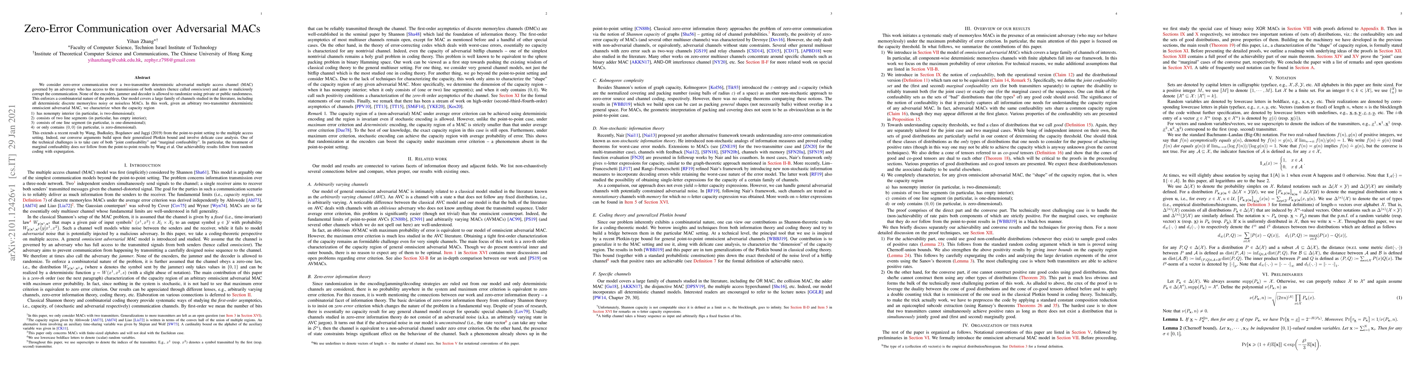 The paper presents a detailed characterization of the capacity region for two-transmitter deterministic omniscient adversarial MACs, extending previous results from point-to-point settings to the multiple access setting.