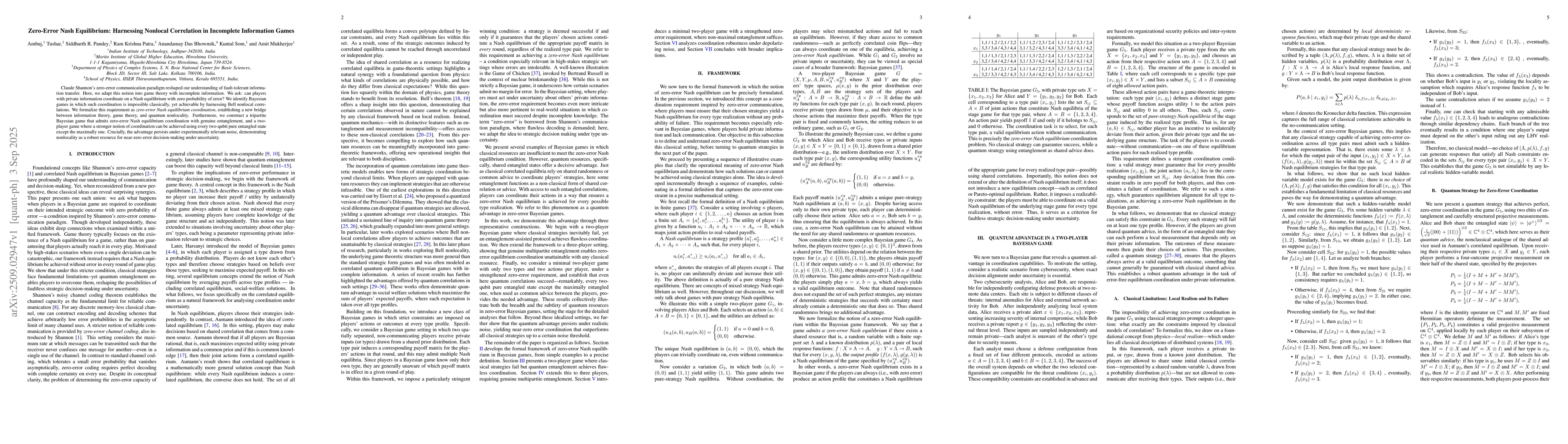 Claude Shannon's zero-error communication paradigm reshaped our understanding of fault-tolerant information transfer. Here, we adapt this notion into game theory with incomplete information. We ask: can players with private information coordinate on a Nash equilibrium with zero probability of error? We identify Bayesian games in which such coordination is impossible classically, yet achievable by harnessing Bell nonlocal correlations. We formalize this requirement as zero-error Nash equilibrium coordination, establishing a new bridge between information theory, game theory, and quantum nonlocality. Furthermore, we construct a tripartite Bayesian game that admits zero-error Nash equilibrium coordination with genuine entanglement, and a two-player game where a stronger notion of coordination can be achieved using every two-qubit pure entangled state except the maximally one. Crucially, the advantage persists under experimentally relevant noise, demonstrating nonlocality as a robust resource for near-zero error decision-making under uncertainty.