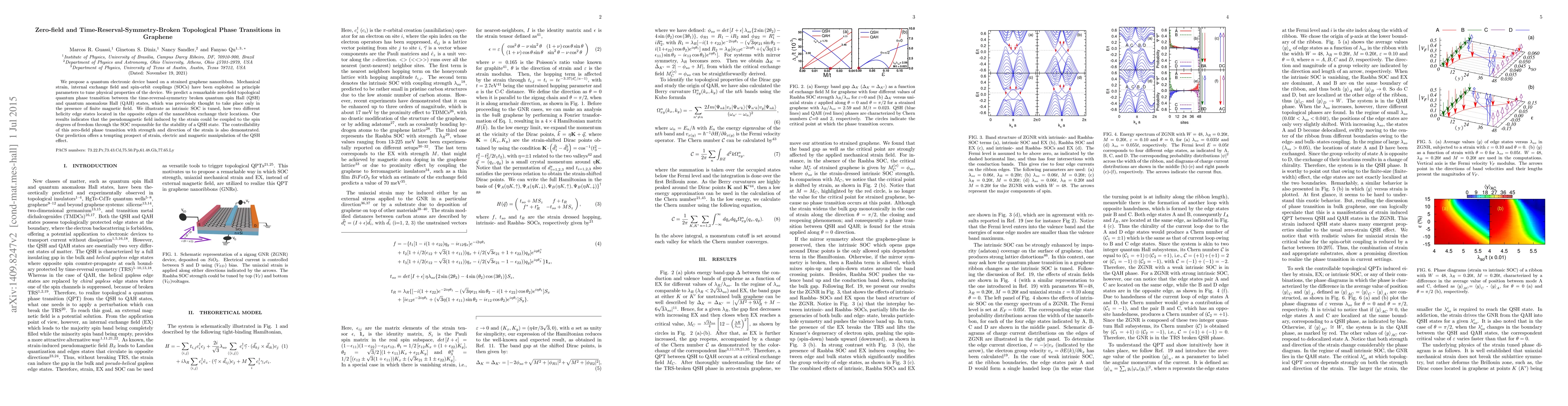 This paper proposes a strained graphene nanoribbon device where mechanical strain, internal exchange fields, and spin-orbit couplings enable a zero-field topological quantum phase transition between time-reversal-symmetry-broken quantum spin Hall and quantum anomalous Hall states. The study demonstrates the controllability of this transition via strain, offering potential for manipulating the quantum spin Hall effect without an external magnetic field.