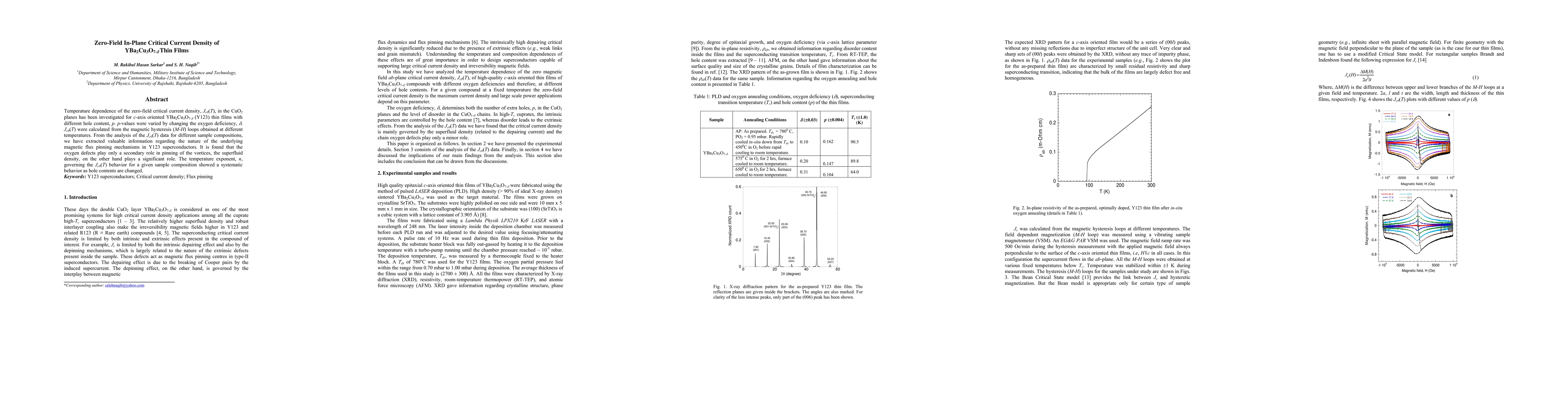 Temperature dependence of the zero-field critical current density, Jc0(T), in the CuO2 planes has been investigated for c-axis oriented YBa2Cu3O7-d (Y123) thin films with different hole content, p. p-values were varied by changing the oxygen deficiency, d. Jc0(T) were calculated from the magnetic hysteresis (M-H) loops obtained at different temperatures. From the analysis of the Jc0(T) data for different sample compositions, we have extracted valuable information regarding the nature of the underlying magnetic flux pinning mechanisms in Y123 superconductors. It is found that the oxygen defects play only a secondary role in pinning of the vortices, the superfluid density, on the other hand plays a significant role. The temperature exponent, n, governing the Jc0(T) behavior for a given sample composition showed a systematic behavior as hole contents are changed.