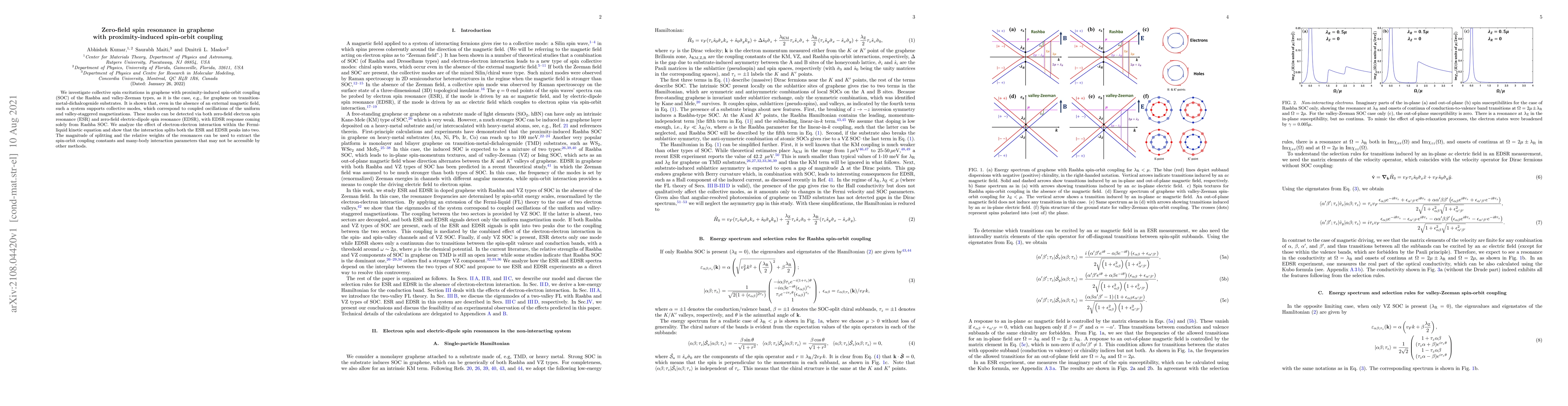 We investigate collective spin excitations in graphene with proximity-induced spin-orbit coupling (SOC) of the Rashba and valley-Zeeman types, as it is the case, e.g., for graphene on transition- metal-dichalcogenide substrates. It is shown that, even in the absence of an external magnetic field, such a system supports collective modes, which correspond to coupled oscillations of the uniform and valley-staggered magnetizations. These modes can be detected via both zero-field electron spin resonance (ESR) and zero-field electric-dipole spin resonance (EDSR), with EDSR response coming solely from Rashba SOC. We analyze the effect of electron-electron interaction within the Fermi- liquid kinetic equation and show that the interaction splits both the ESR and EDSR peaks into two. The magnitude of splitting and the relative weights of the resonances can be used to extract the spin-orbit coupling constants and many-body interaction parameters that may not be accessible by other methods.