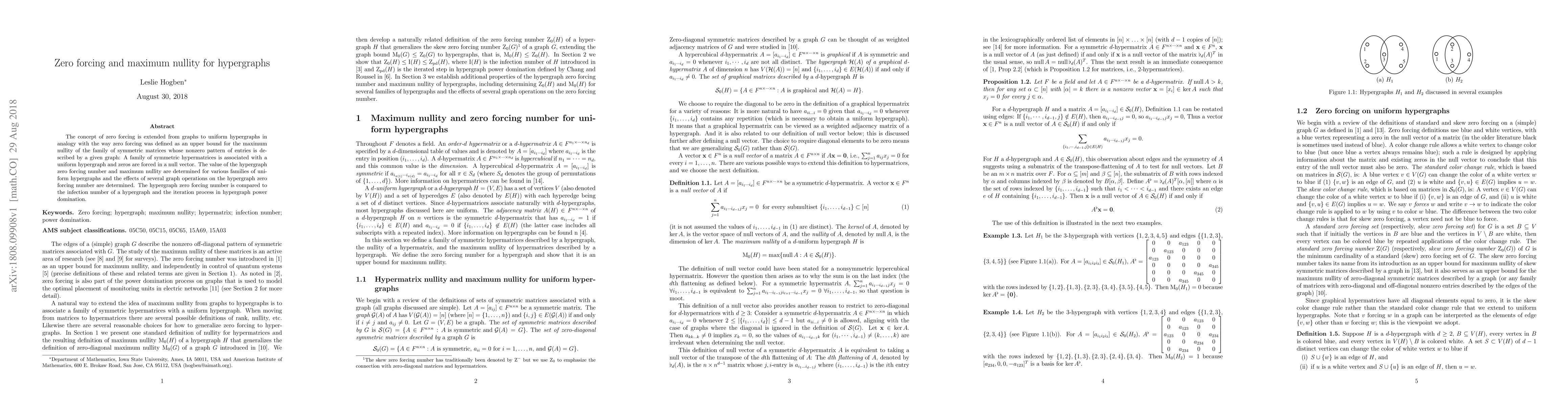 This paper extends the zero forcing concept from graphs to hypergraphs, associating symmetric hypermatrices with uniform hypergraphs. It determines the hypergraph zero forcing number and maximum nullity for various hypergraph families, and examines the effects of graph operations on this number, comparing it with the infection number and hypergraph power domination.