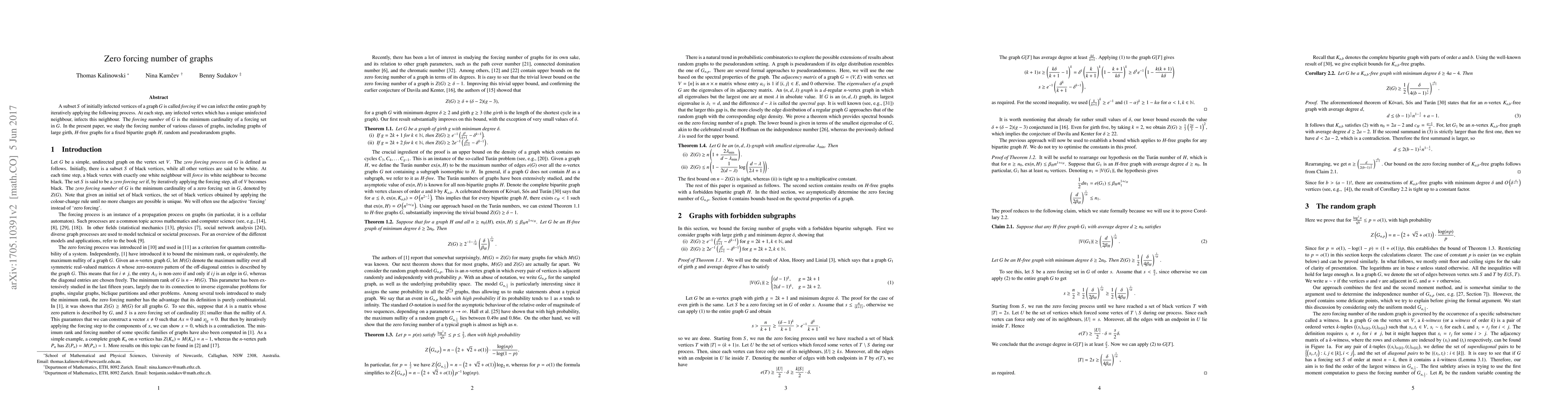 This paper investigates the zero forcing number, which is the minimum size of a subset of initially infected vertices in a graph that can infect the entire graph through a specific iterative process, focusing on various classes of graphs including those with large girth, bipartite-free graphs, and random/pseudorandom graphs.