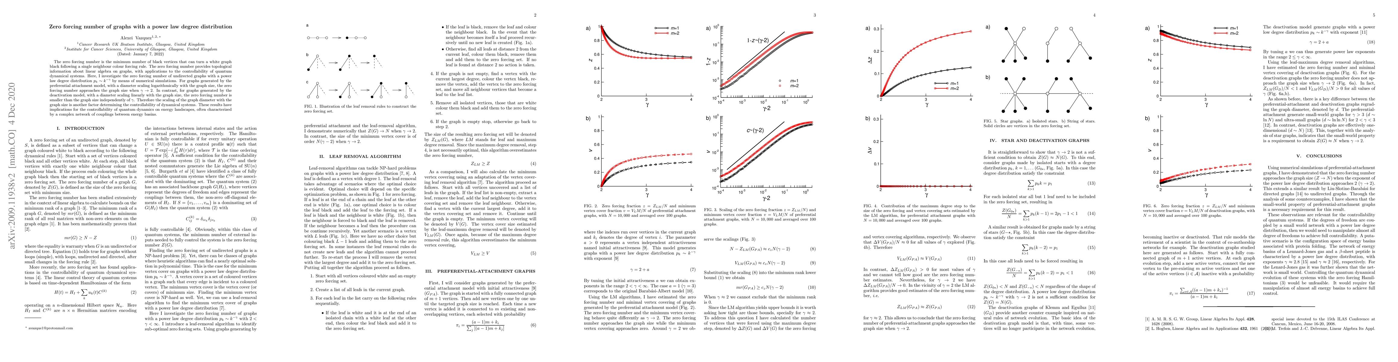 The zero forcing number is the minimum number of black vertices that can turn a white graph black following a single neighbour colour forcing rule. The zero forcing number provides topological information about linear algebra on graphs, with applications to the controllability of linear dynamical systems and quantum walks on graphs among other problems. Here, I investigate the zero forcing number of undirected simple graphs with a power law degree distribution $p_k\sim k^{-\gamma}$. For graphs generated by the preferential attachment model, with a diameter scaling logarithmically with the graph size, the zero forcing number approaches the graph size when $\gamma\rightarrow2$. In contrast, for graphs generated by the deactivation model, with a diameter scaling linearly with the graph size, the zero forcing number is smaller than the graph size independently of $\gamma$. Therefore the scaling of the graph diameter with the graph size is another factor determining the controllability of dynamical systems.