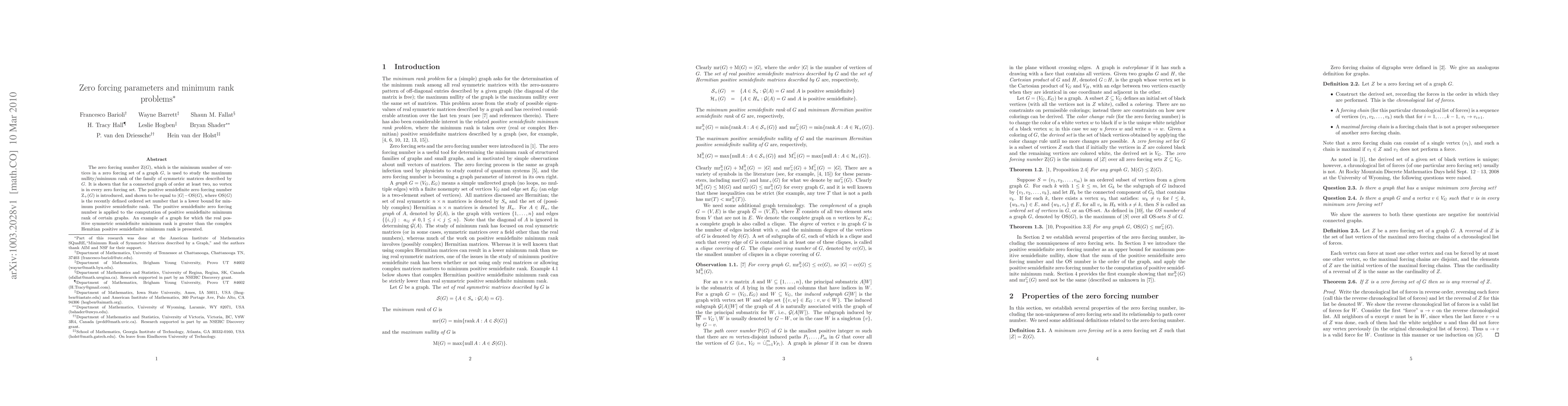 This paper explores the zero forcing number Z(G) and its implications on the minimum rank of symmetric matrices related to a graph G. It introduces the positive semidefinite zero forcing number Z_+(G) and relates it to the ordered set number OS(G), using it to determine the positive semidefinite minimum rank for specific graphs, highlighting a case where the real rank differs from the complex rank.