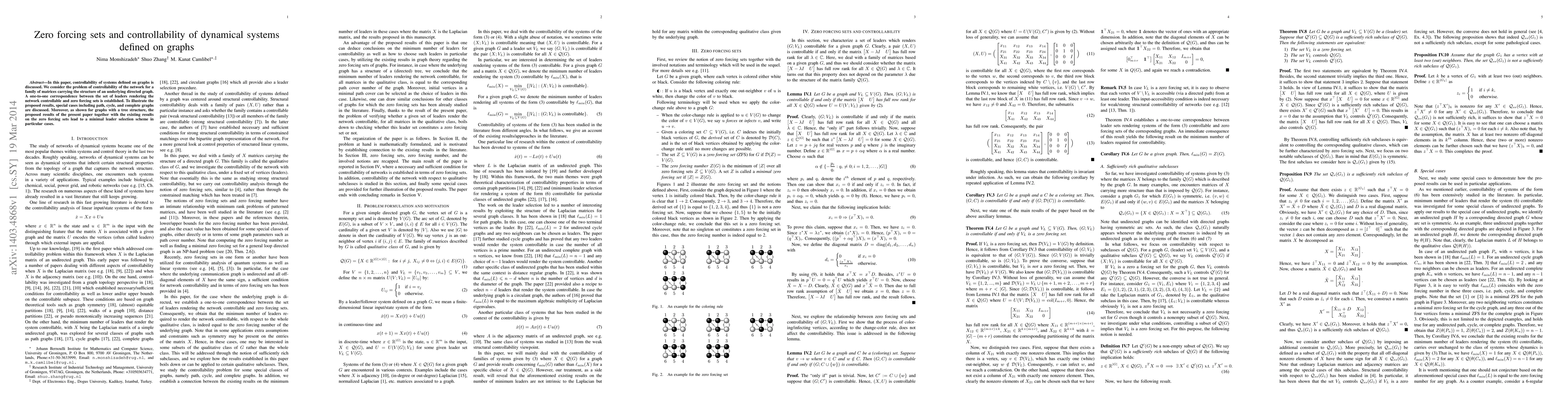 In this paper, controllability of systems defined on graphs is discussed. We consider the problem of controllability of the network for a family of matrices carrying the structure of an underlying directed graph. A one-to-one correspondence between the set of leaders rendering the network controllable and zero forcing sets is established. To illustrate the proposed results, special cases including path, cycle, and complete graphs are discussed. Moreover, as shown for graphs with a tree structure, the proposed results of the present paper together with the existing results on the zero forcing sets lead to a minimal leader selection scheme in particular cases.