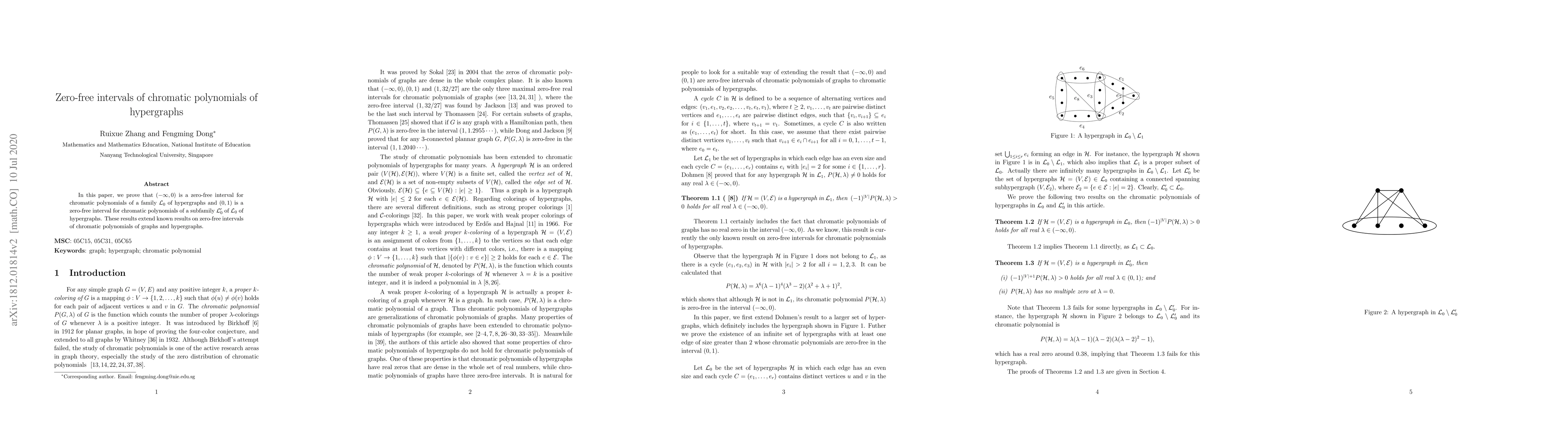 This paper establishes that $(-\infty, 0)$ is a zero-free interval for chromatic polynomials of a hypergraph family ${\cal L}_0$, and $(0, 1)$ for a subfamily ${\cal L}_0'$, extending previous findings on zero-free intervals of chromatic polynomials in graphs and hypergraphs.