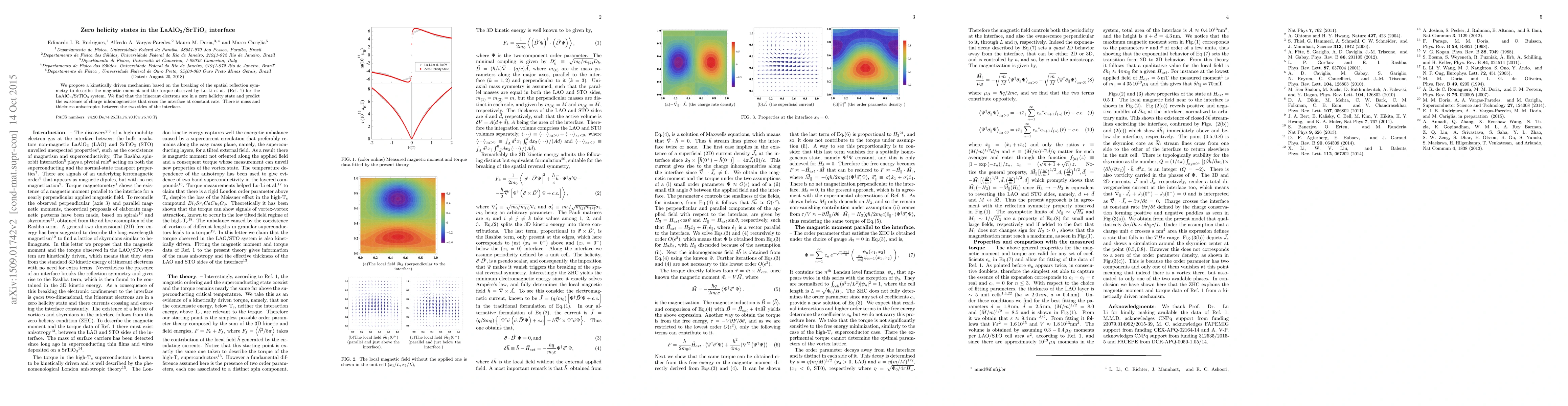 We propose a kinetically driven mechanism based on the breaking of the spatial reflection symmetry to describe the magnetic moment and the torque observed by Lu-Li et al. (Ref. 1) for the $LaAlO_3/SrTiO_3$ system. We find that the itinerant electrons are in a zero helicity state and predict the existence of charge inhomogeneities that cross the interface at constant rate. There is mass and thickness anisotropies between the two sides of the interface.